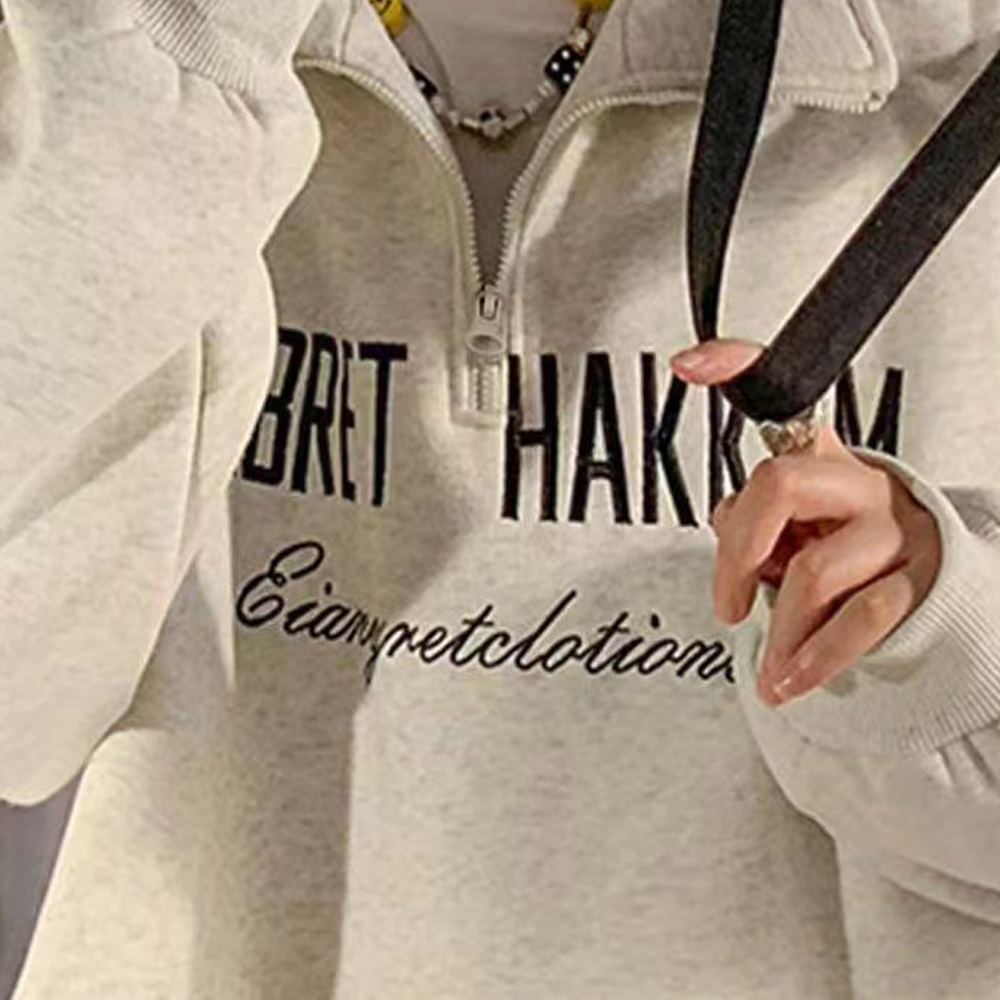 ハーフジップ レディース スウェット トレーナー プルオーバー 韓国ファッション おしゃれ 秋 ビッグシルエット 無地 トップス 大きいサイズ 冬