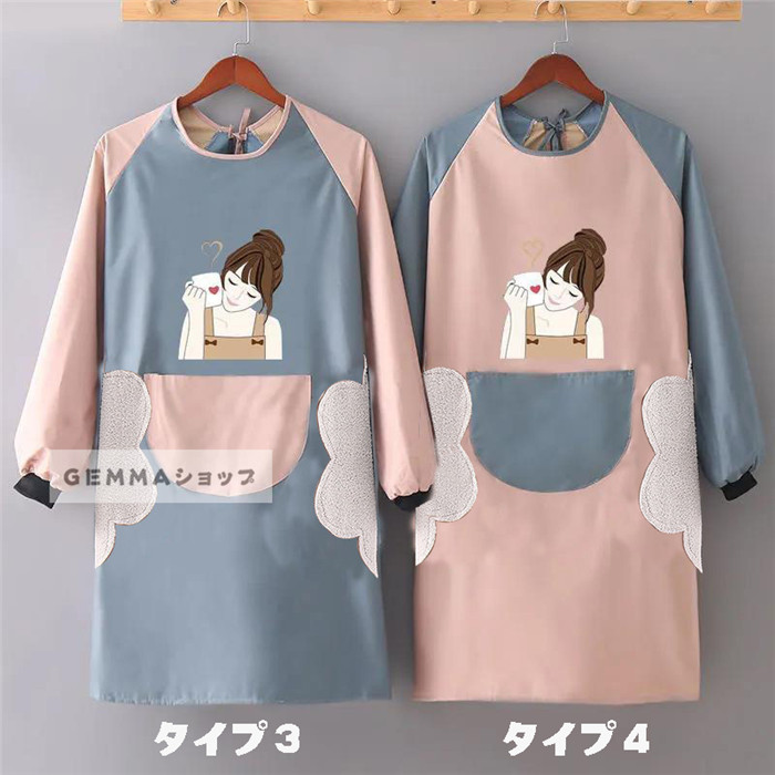 エプロン 料理 防水 防油 素材 可愛い エプロン 自宅 着るエプロン 長袖 実用的 ギフト シンプル おしゃれ キッチン 家庭