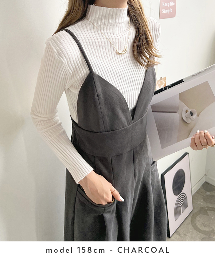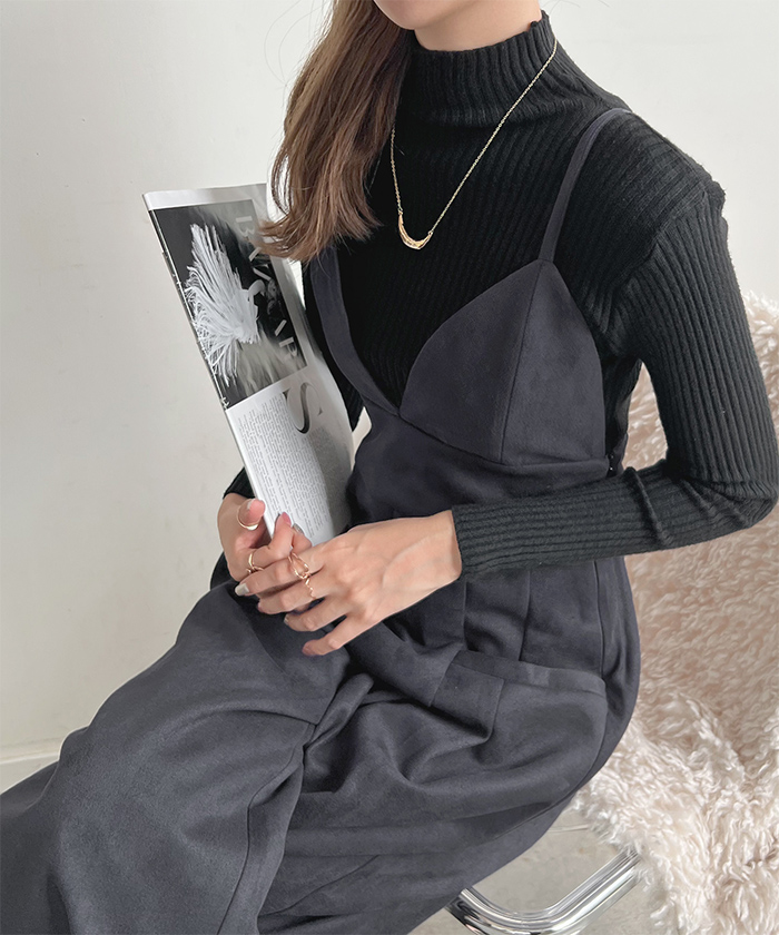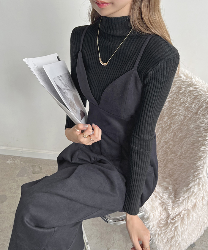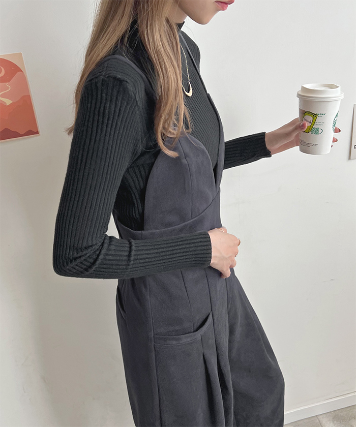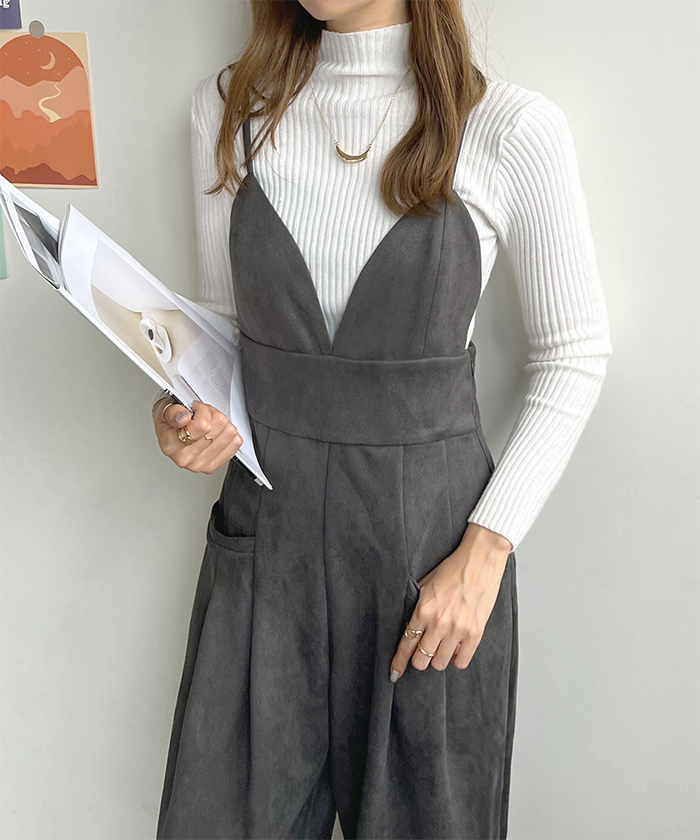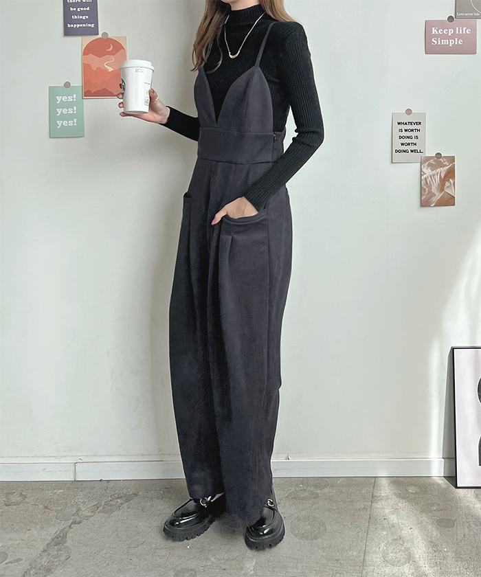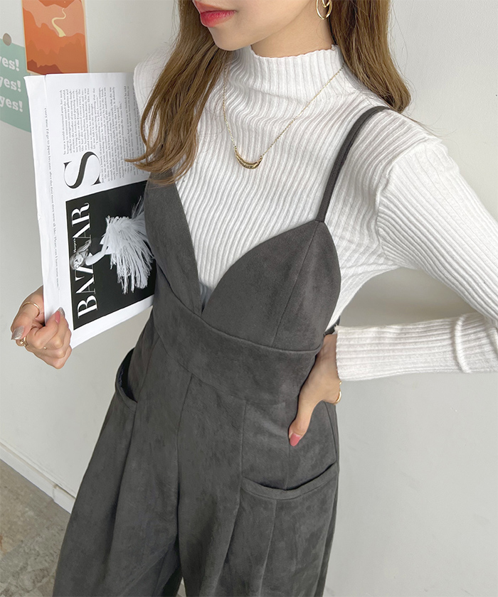 ビスチェデザインでトレンドアップした滑らかなスエード素材のサロペット♪