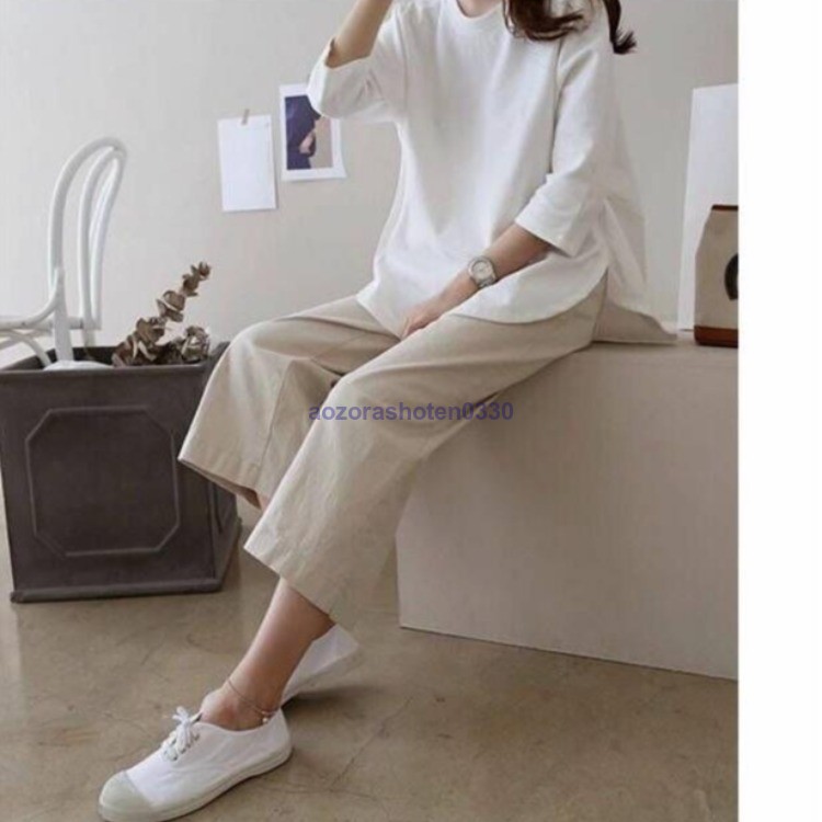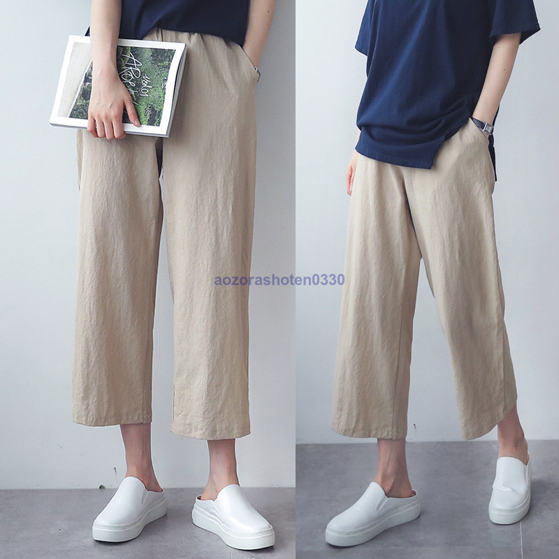 ガウチョパンツ ワイドパンツ 九分丈 カジュアル シンプル 韓国風 ウエストゴム 美脚 レディース ゆ
