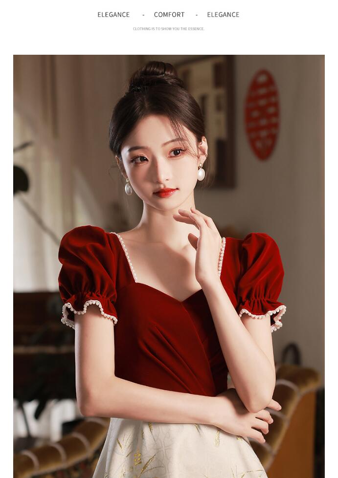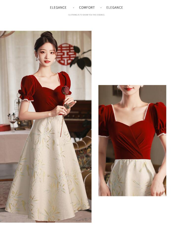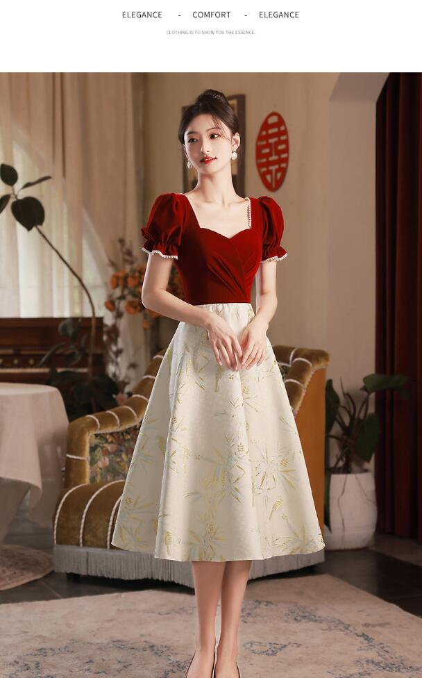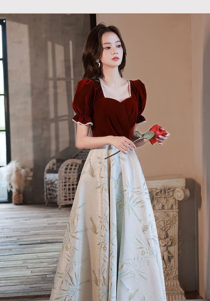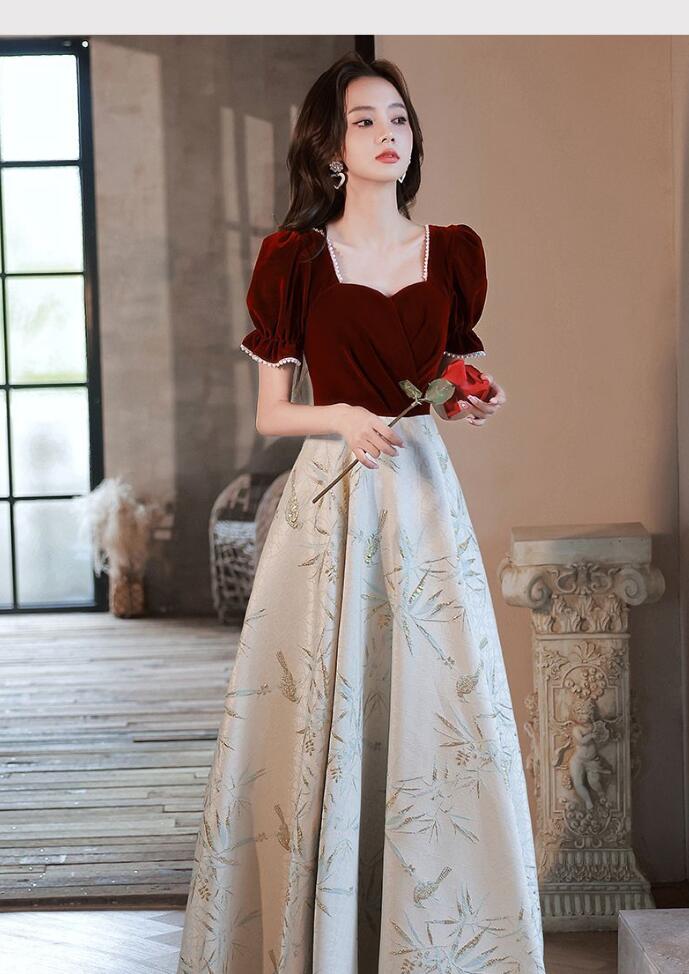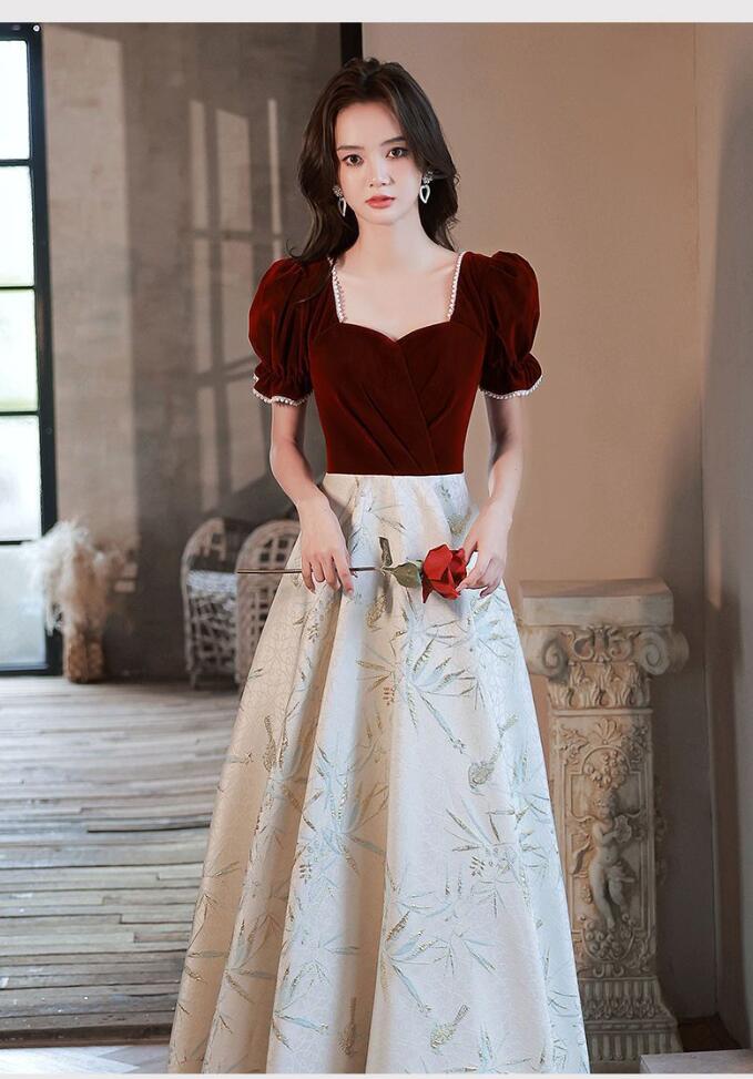 イブニングドレス ワイン赤 ドッキング 結婚式ドレス 二次会ドレス ミディアム丈 ロング丈 ピアノ発表会ドレス ゲストドレス お呼ばれドレス 披露宴