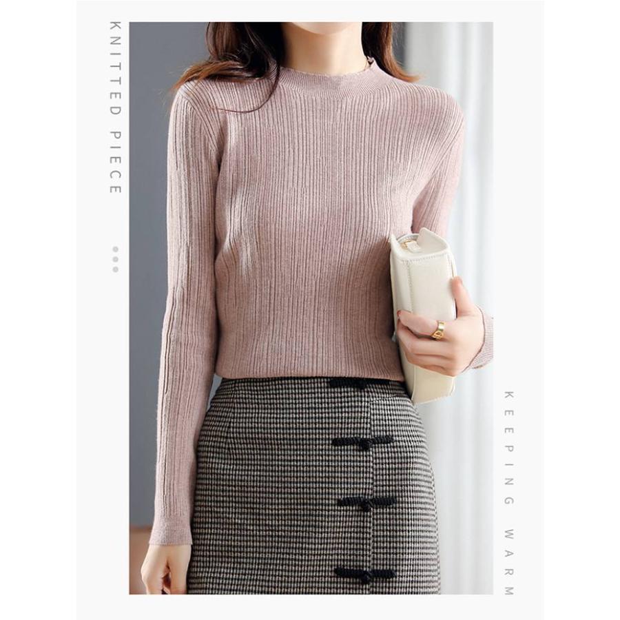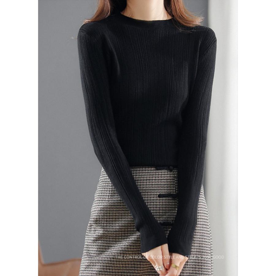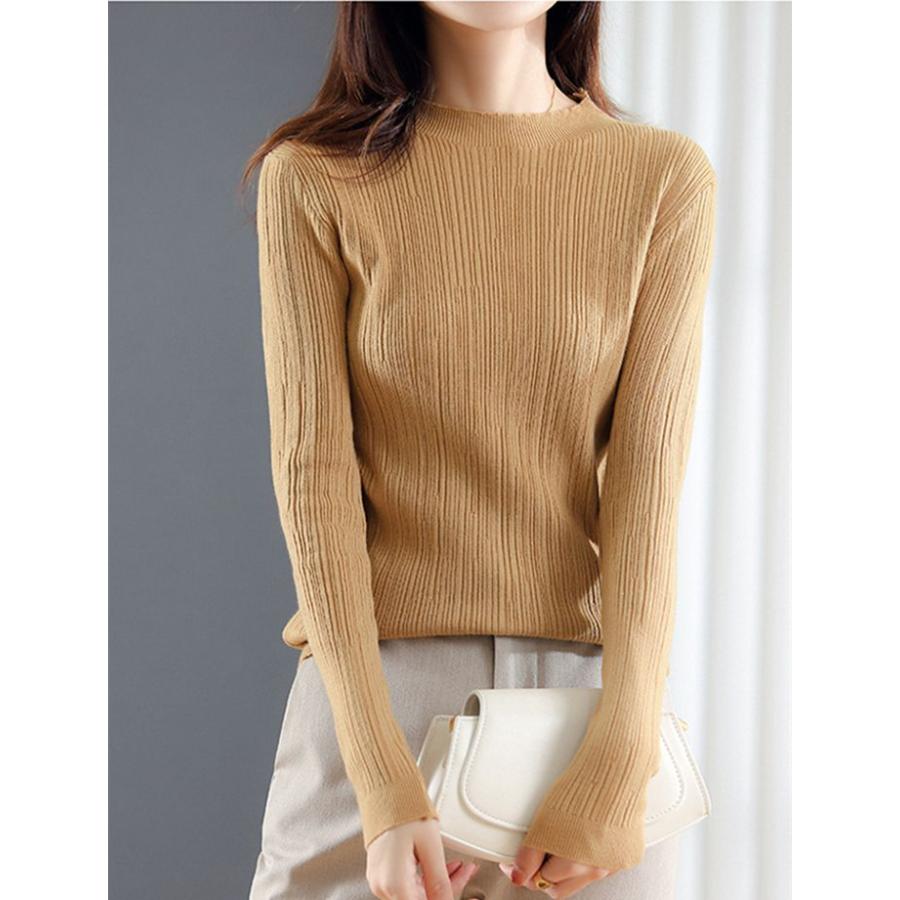 ニット レディース 長袖 クルーネック インナー 無地 トップス シンプル 女性 セーター おしゃれ カジュアル ファッション エレガント 秋冬