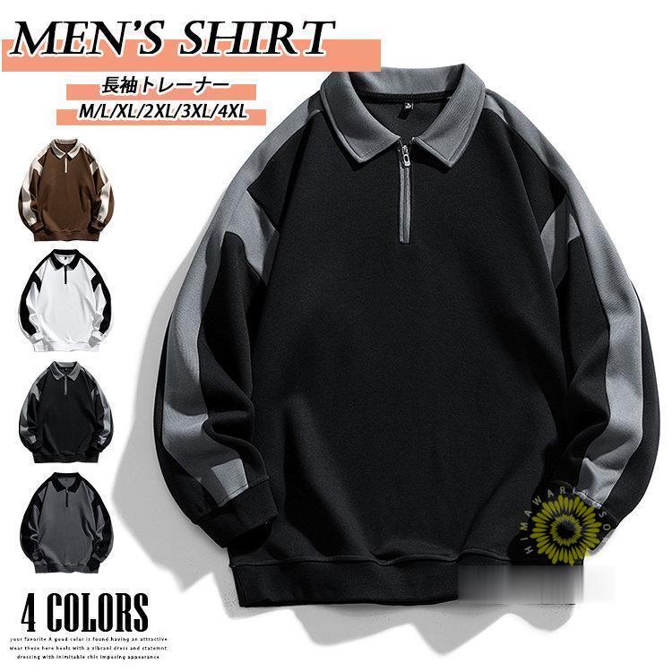 トレーナー 長袖 メンズ スウェットシャツ プルオーバー カラー切替 長袖トレーナー ハーフジップ ゆったり トップス 秋服 秋 ファッション