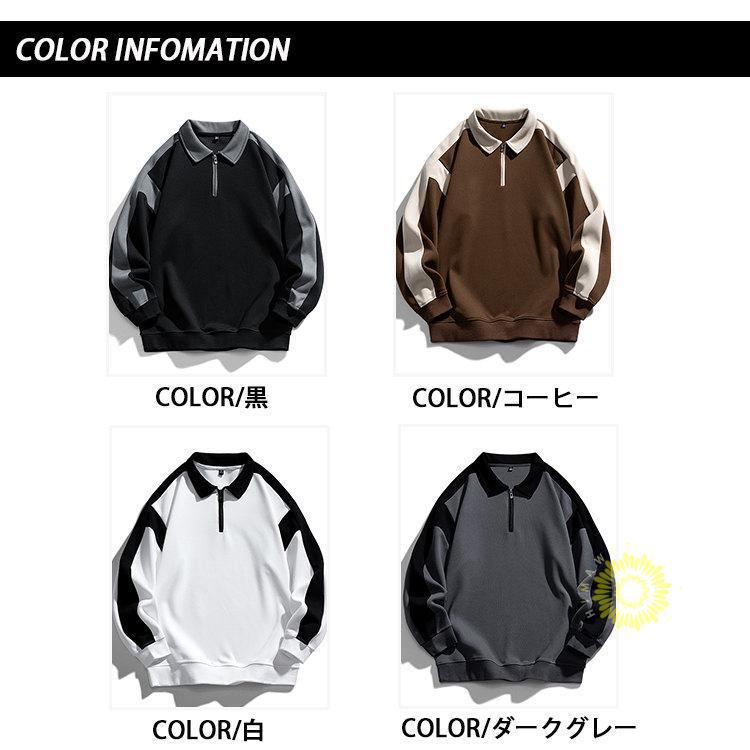 トレーナー 長袖 メンズ スウェットシャツ プルオーバー カラー切替 長袖トレーナー ゆったり トップス秋服 ファッション ハーフジップ 秋
