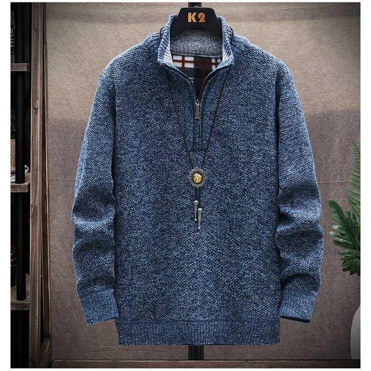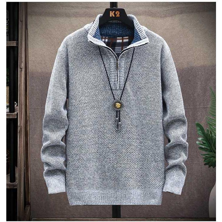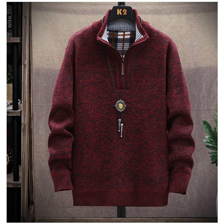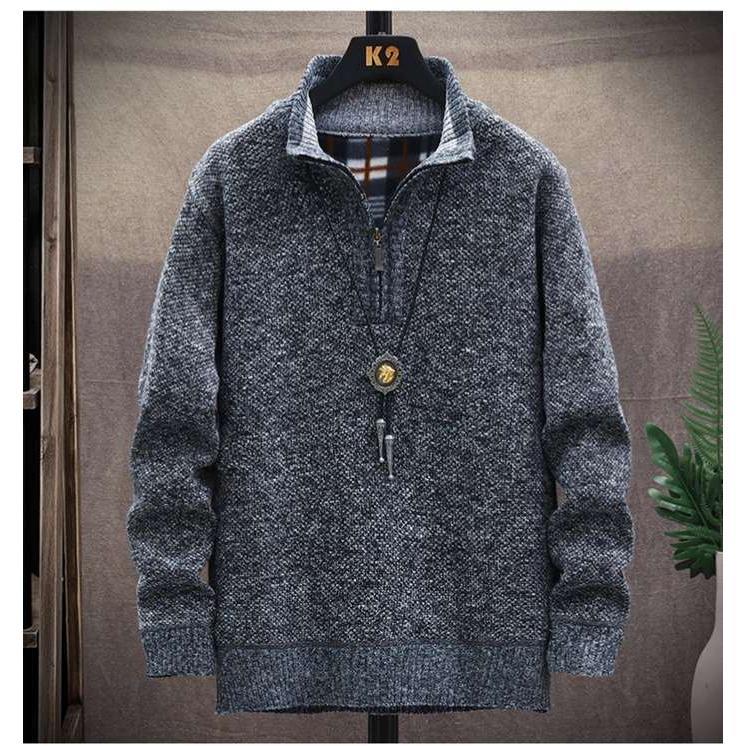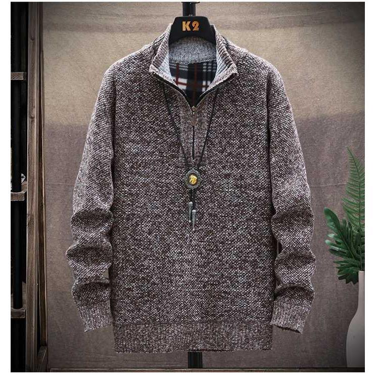 ニットセーター メンズ 長袖 ニット セーター ファスナー 立ち襟 厚手 裏起毛 防寒 トップス 無地 カジュアル シンプル ファッション 春服 秋服 冬服