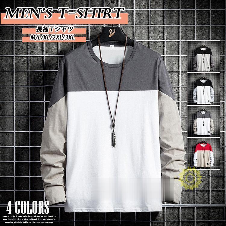 長袖Tシャツ メンズ Tシャツ プルオーバー クルーネック ティーシャツ カラー切替 トップス 秋服 30代 40代 50代