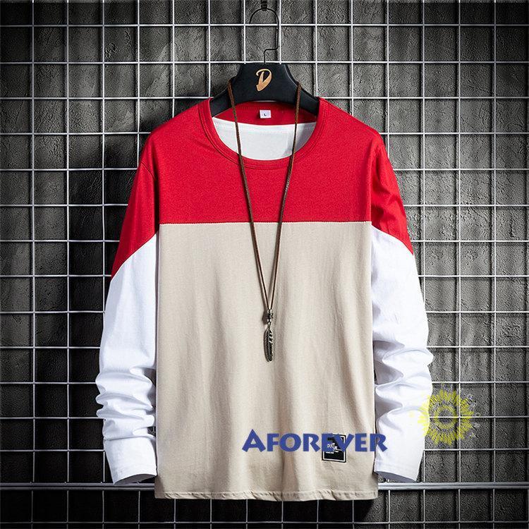長袖Tシャツ メンズ Tシャツ プルオーバー クルーネック ティーシャツ 秋コーデ カラー切替 50代 30代40代 秋服 トップス