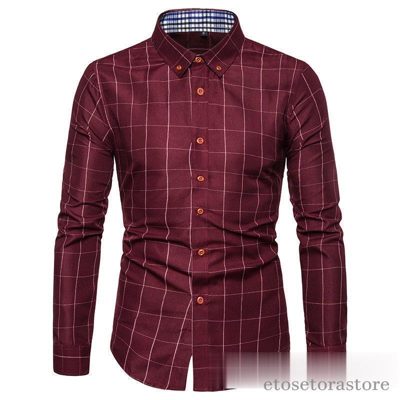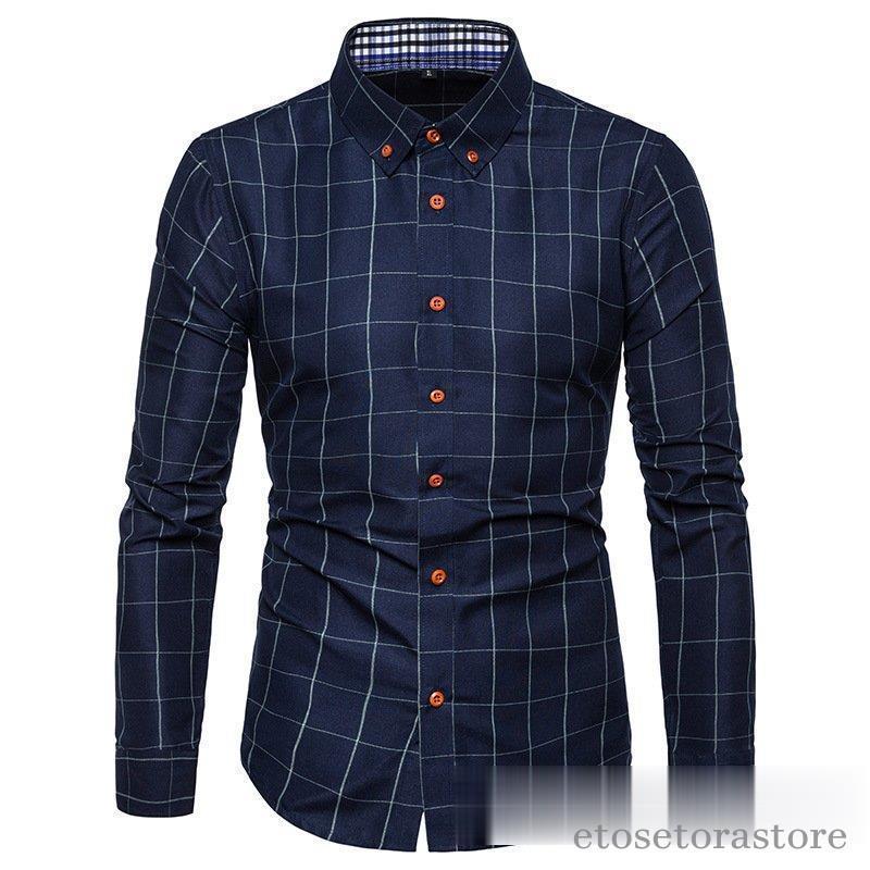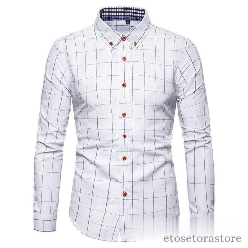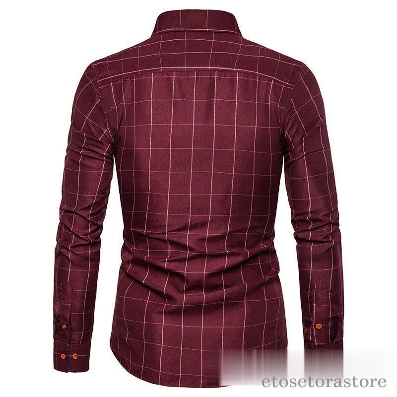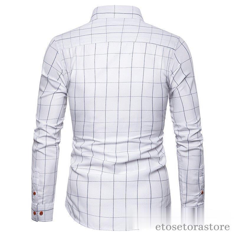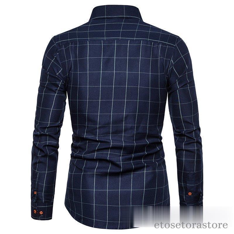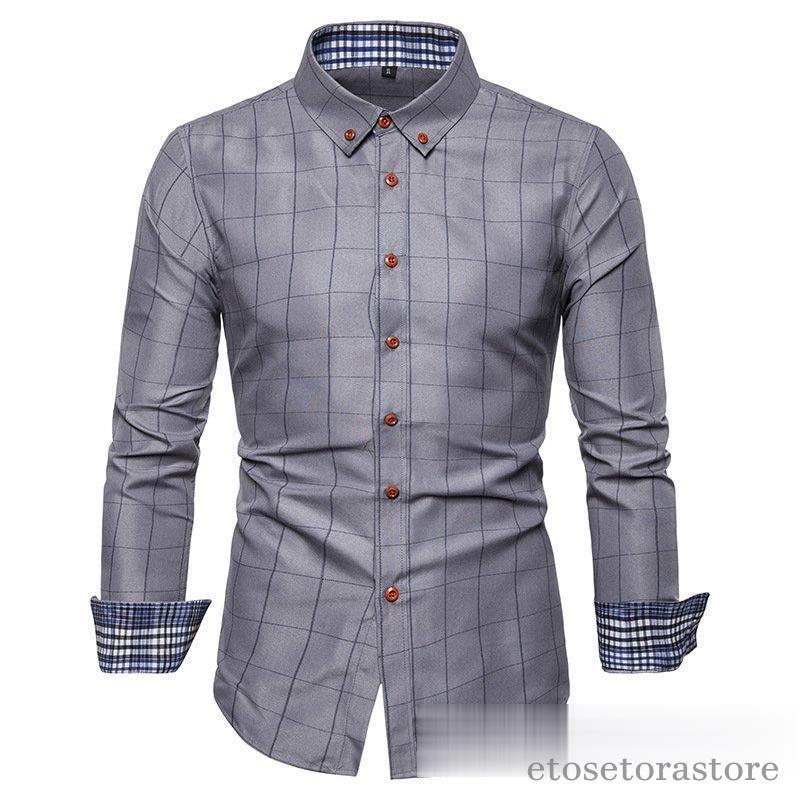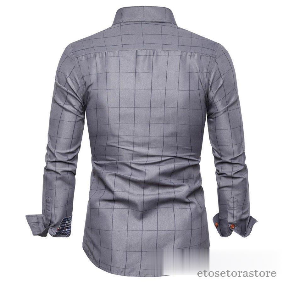 カジュアルシャツ ボタンダウンチェック柄 フォーマルドレスシャツ ビジネスシャツ ドレスシャツ メンズ ファッションバンドトップス40代 長袖