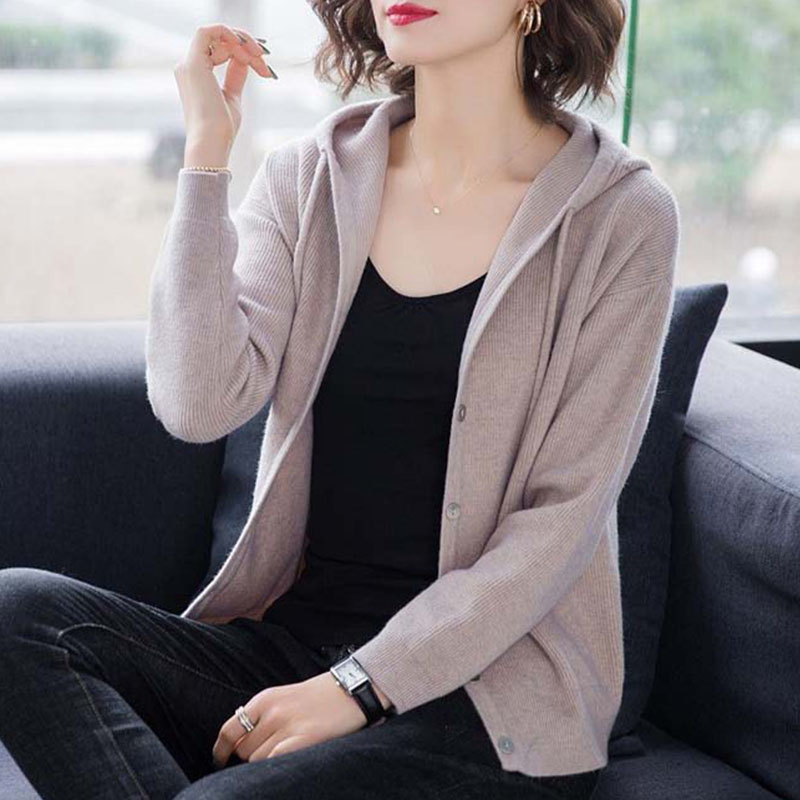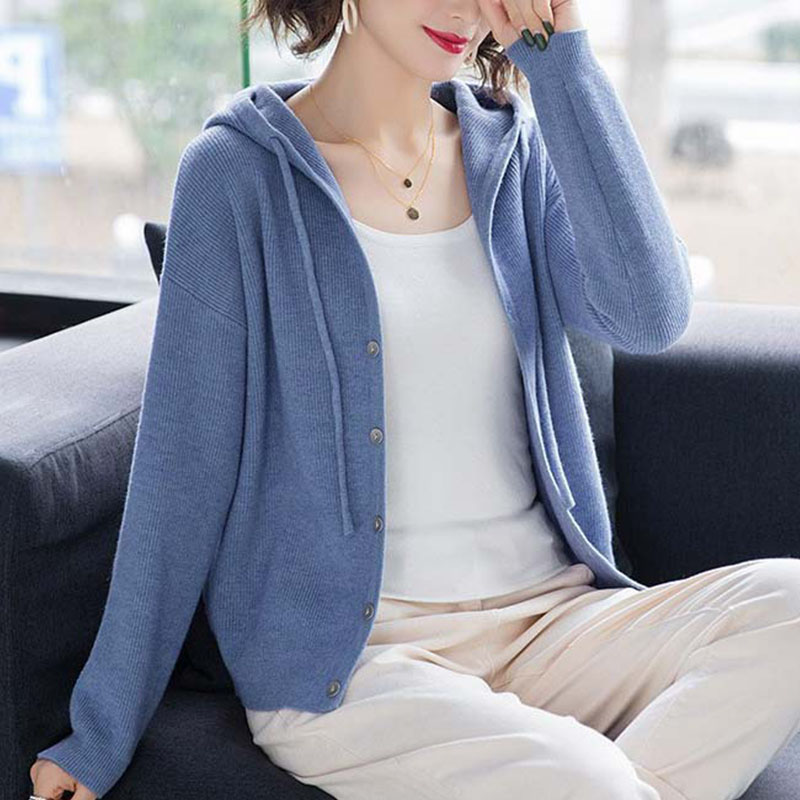ニット レディース カーディガン トップス 長袖 フード付き 春秋コーデ ゆったり ジップアップ おしゃれ カジュアル シンプル