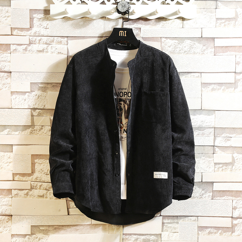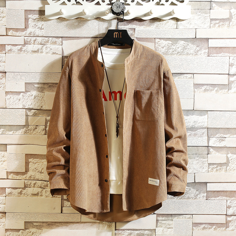 カジュアルシャツ メンズ 長袖 おしゃれ コーデュロイシャツ バンドカラー 40代 50代 無地 薄手 秋服 秋物