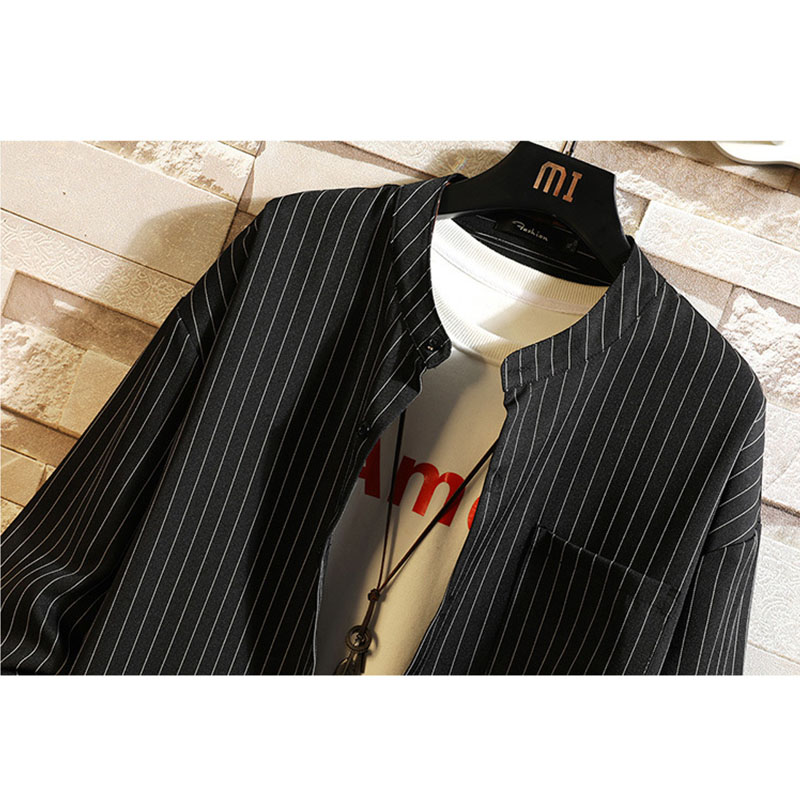 長袖シャツ メンズ スタンドカラーシャツ ストライプシャツ 長袖シャツ 大きいサイズ ビジネス おしゃれ トップス
