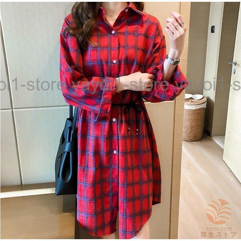 長袖シャツ チェックシャツ ロングシャツ ワンピース 羽織り レディース スタンダードチェック柄 女性 大きいサイズあり トップス ブリットチ