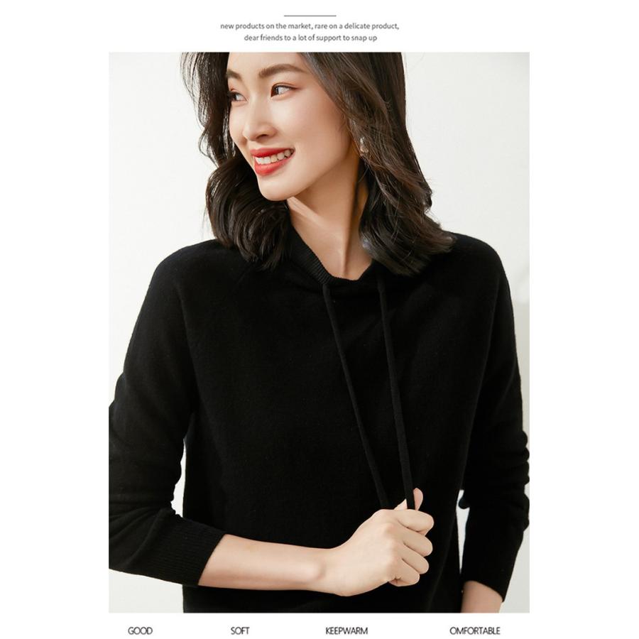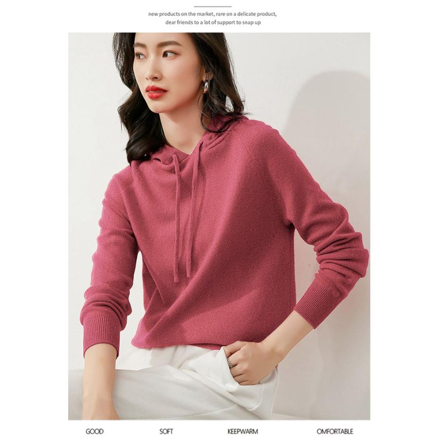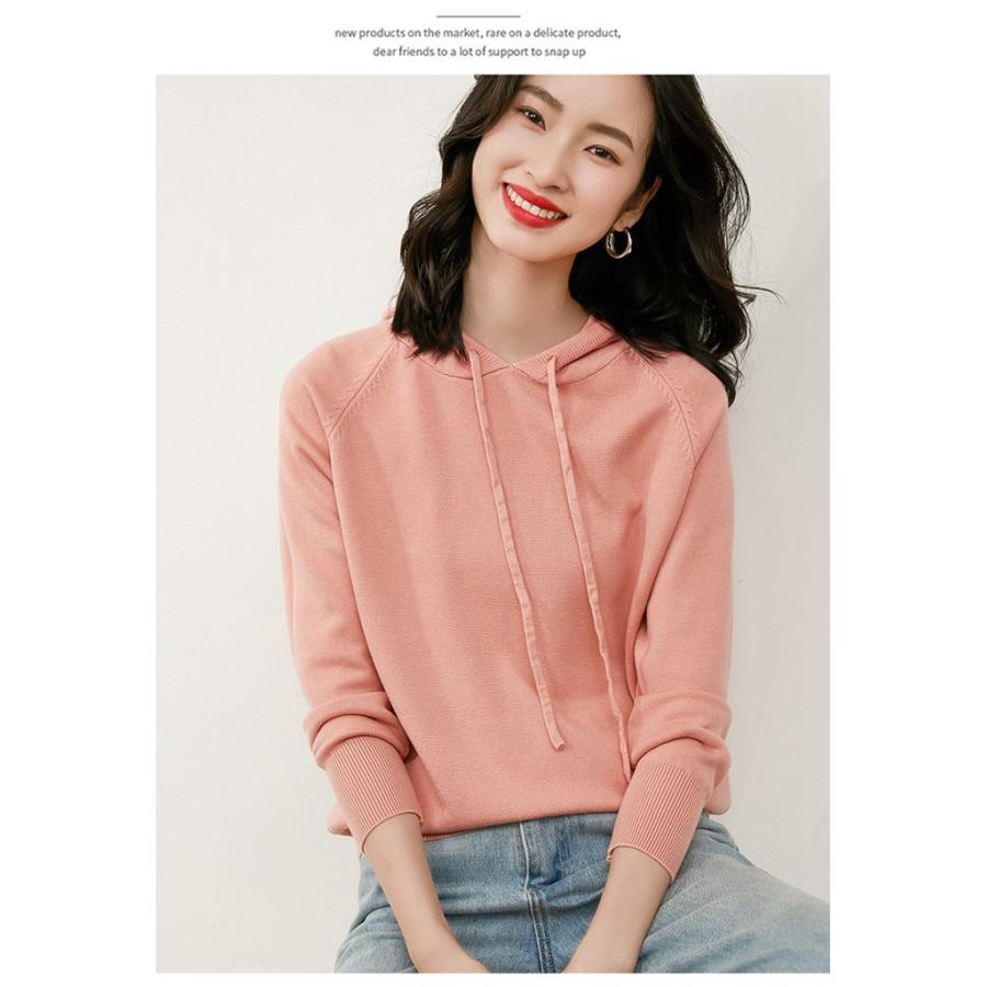 ニットレディース 長袖 ニット フード付き トップス 薄手 カジュアル 秋冬 無地 女性用 冬物 秋物 プ