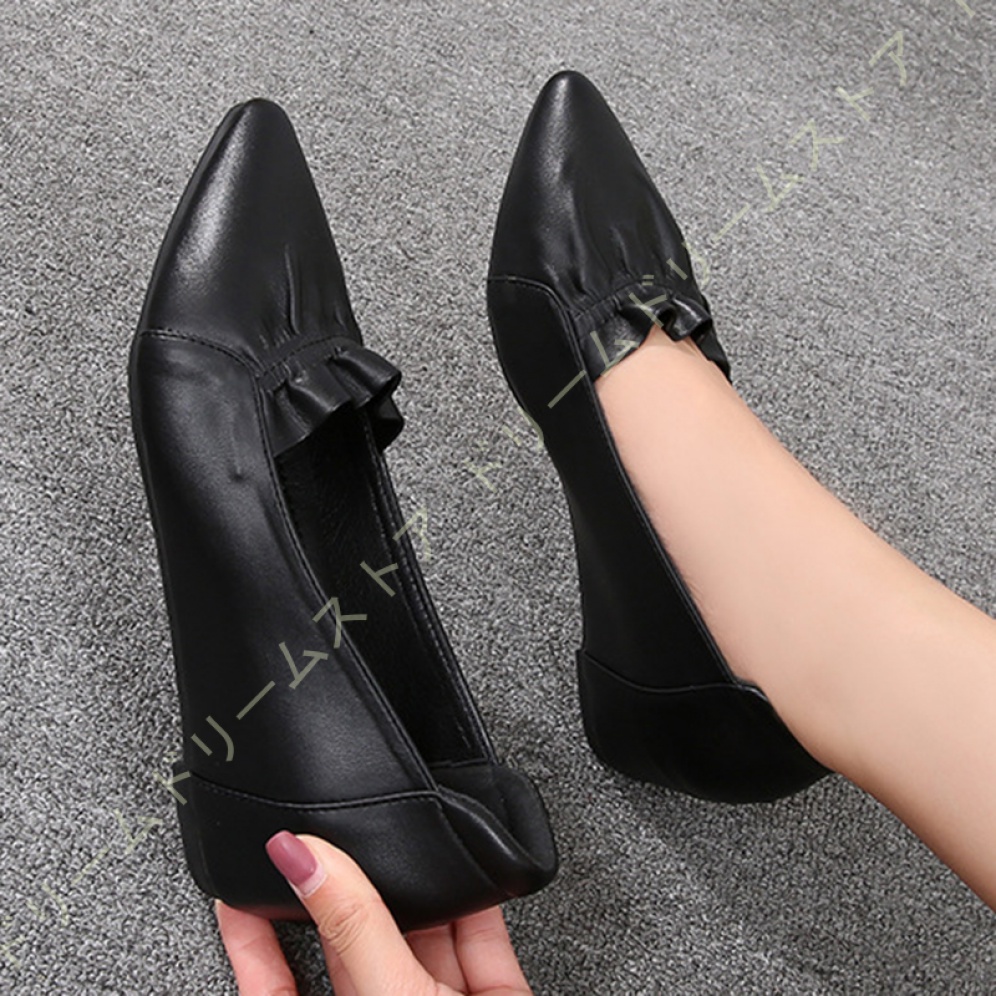 履きやすいさと足を綺麗に魅せるシルエットに、質感のある素材を使用した美しく高級感のある一足です。