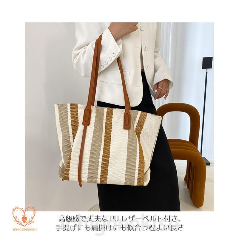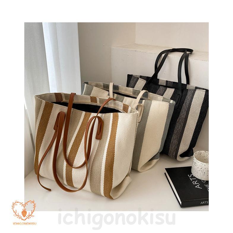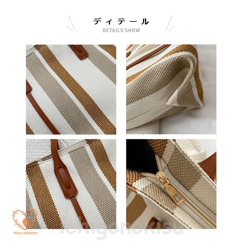 キャンバストート レディース ストライプ柄 帆布 トートバッグ A4 キャンバス 肩掛け 大容量 マザーバッグ ハンドバッグ カジュアル トート ショルダーバッグ チャック付 A4サイズ カジュアルバッグ 手提げ ファッションバッグ