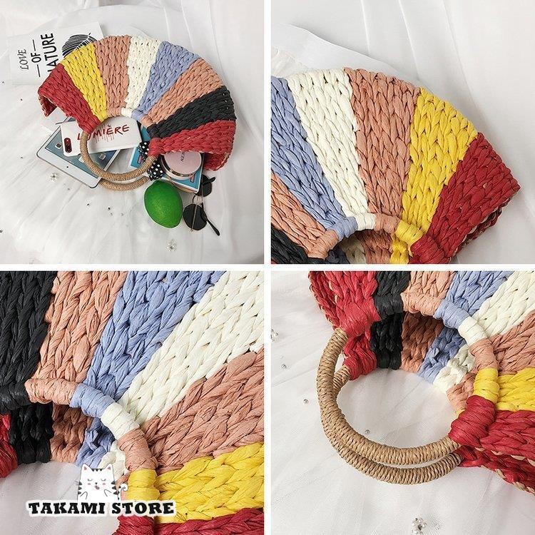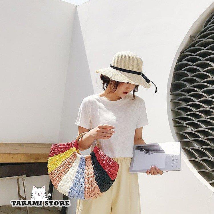 かごバッグ レディース サークルハン ドル トートバッグ 麦わらバッグ かわいい 海 ビーチ 草編みバッグ 夏バッグ 軽量 ピクニック 麦わらバッグ オシャレ