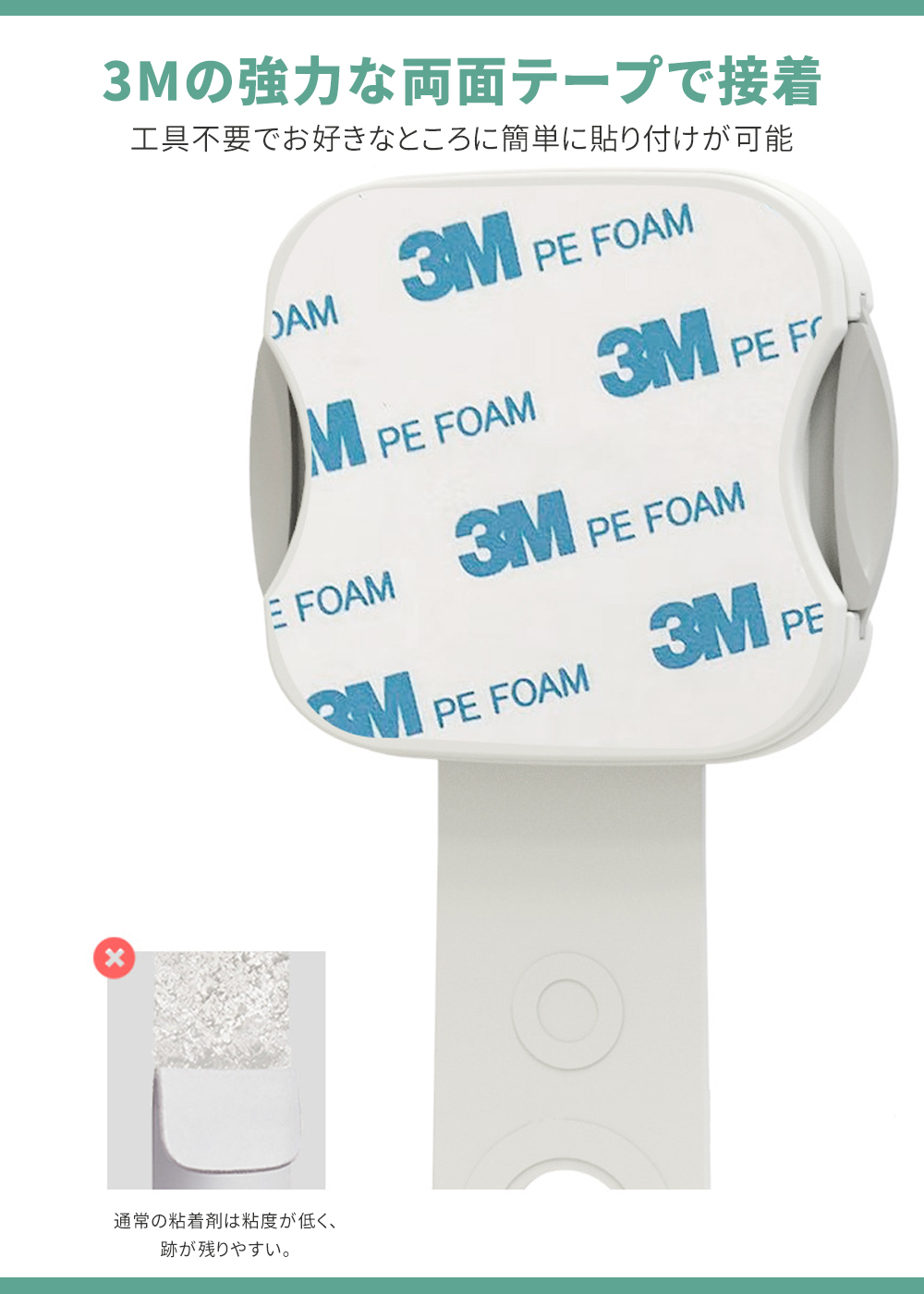 強力な両面テープで貼り付けるだけの簡単設置◎