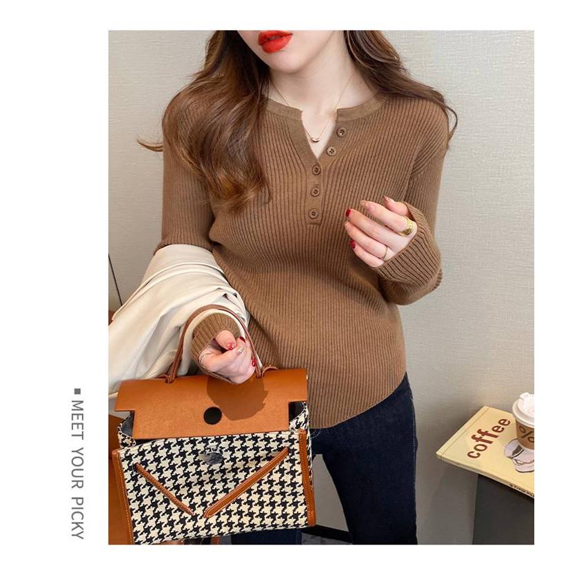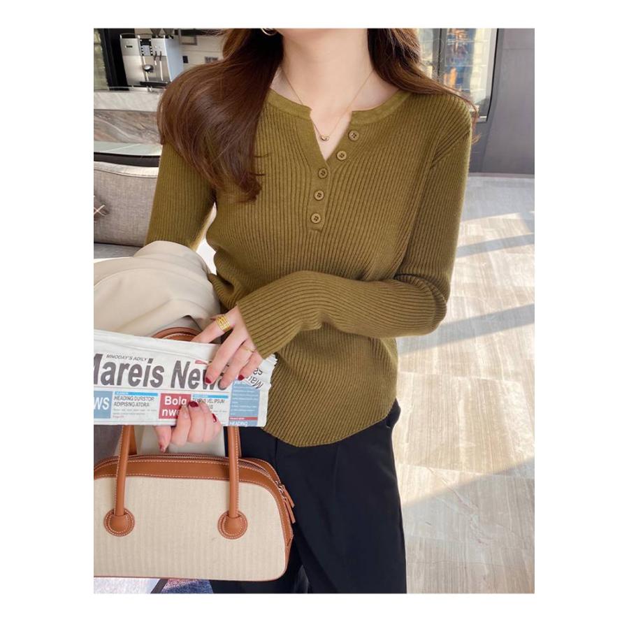 ニット ニットセーター レディース ニットソー 長袖 秋 インナー トップス Vネック 無地 リブニット おしゃれ 秋冬 20代 30代 40代