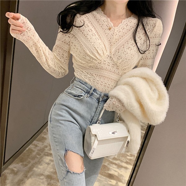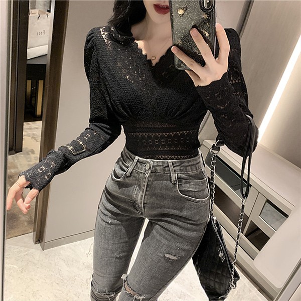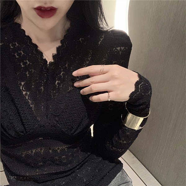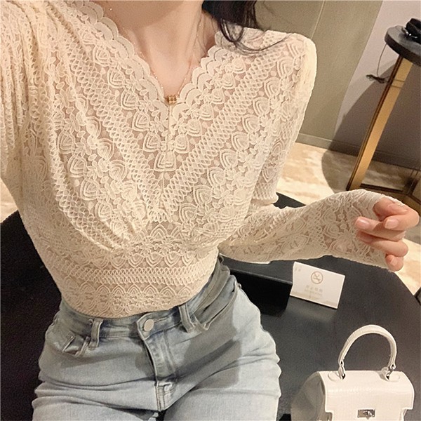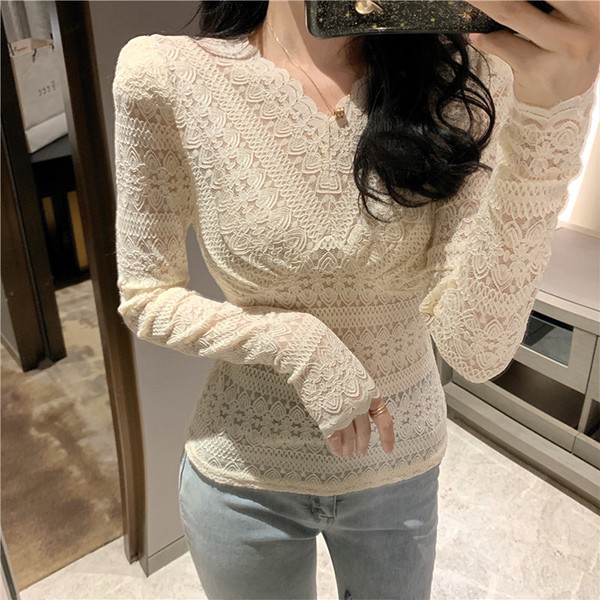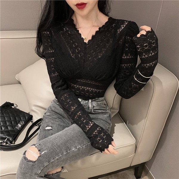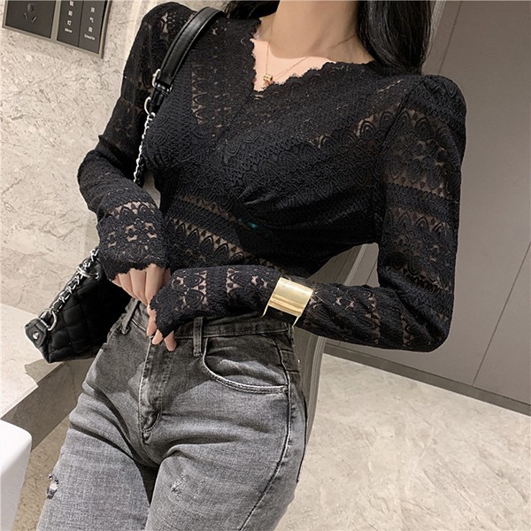 レース トップス レース ブラウス 総レース 立ち襟 シースルー トップス Vネック 花柄 レディース 韓国 ファッション 透け感 伸縮性あり 着やすい 柔らかい 重ね着 きれい 優しい ブラック黒 ベージュ M L 2L L9M3