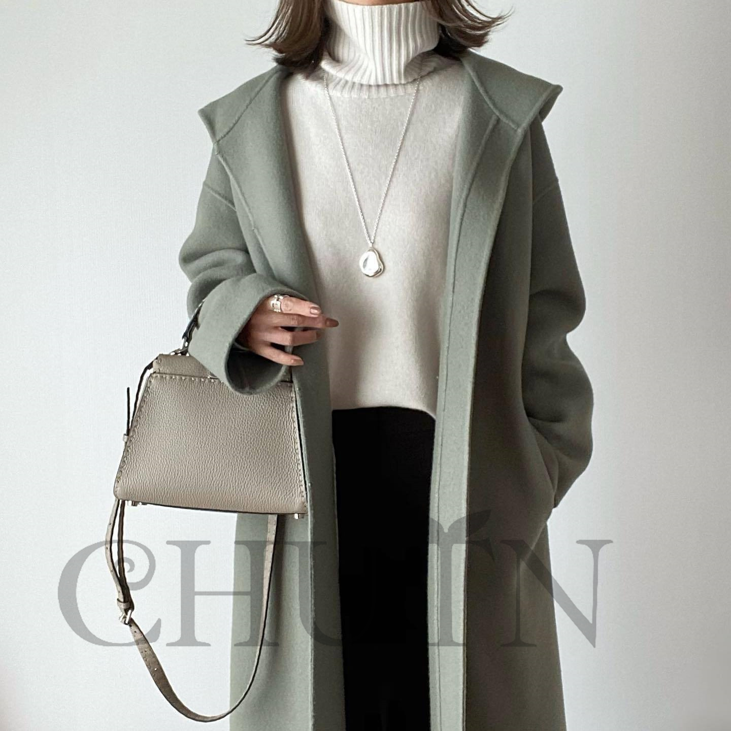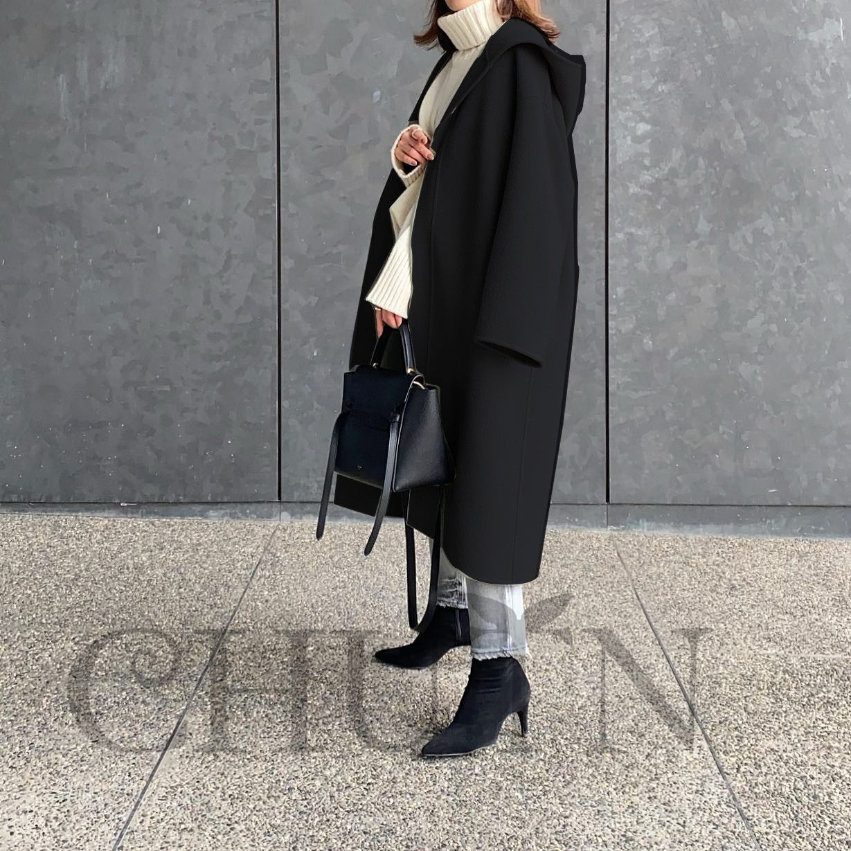 チェスターコートアウターノーカラーコートレディース40代 フードロングコートチェスターコートアウター 大人秋