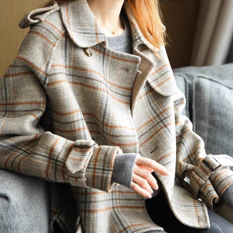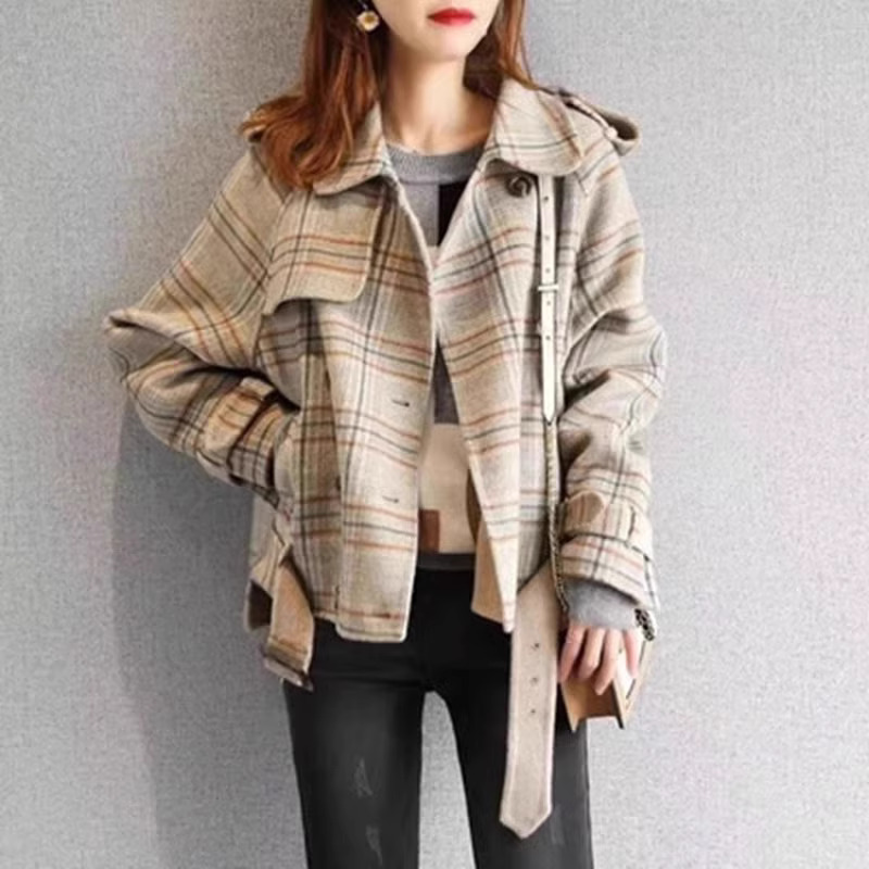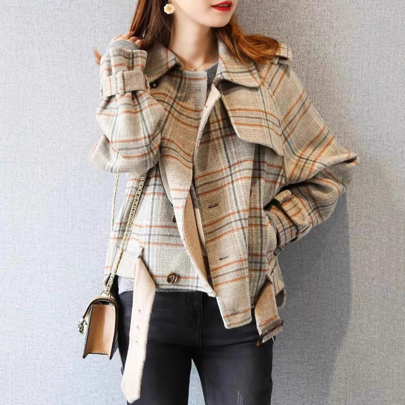 ショートコート レディース チェック 冬 韓国 レディース ショートコート チェック柄 コート レディース ショートコート 襟 アウター 冬 大きいサイズ 3L 4L 秋冬 カジュアル おしゃれ ゆったり