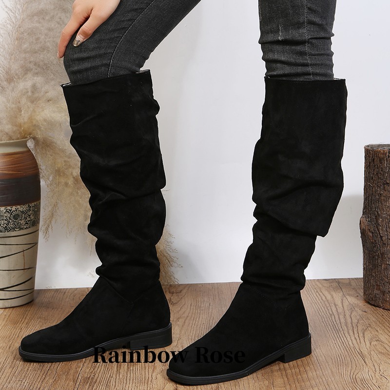 送料無料 ブーツ レディース スエード 防寒 ロング 暖かい ファッション 韓流 合成皮革 折り返し ふわふわ ブラック カーキ 歩きやすい 履きやすい 脱ぎやすい 履き口が折り秋 冬 あったか スノーブーツ