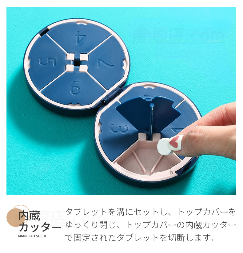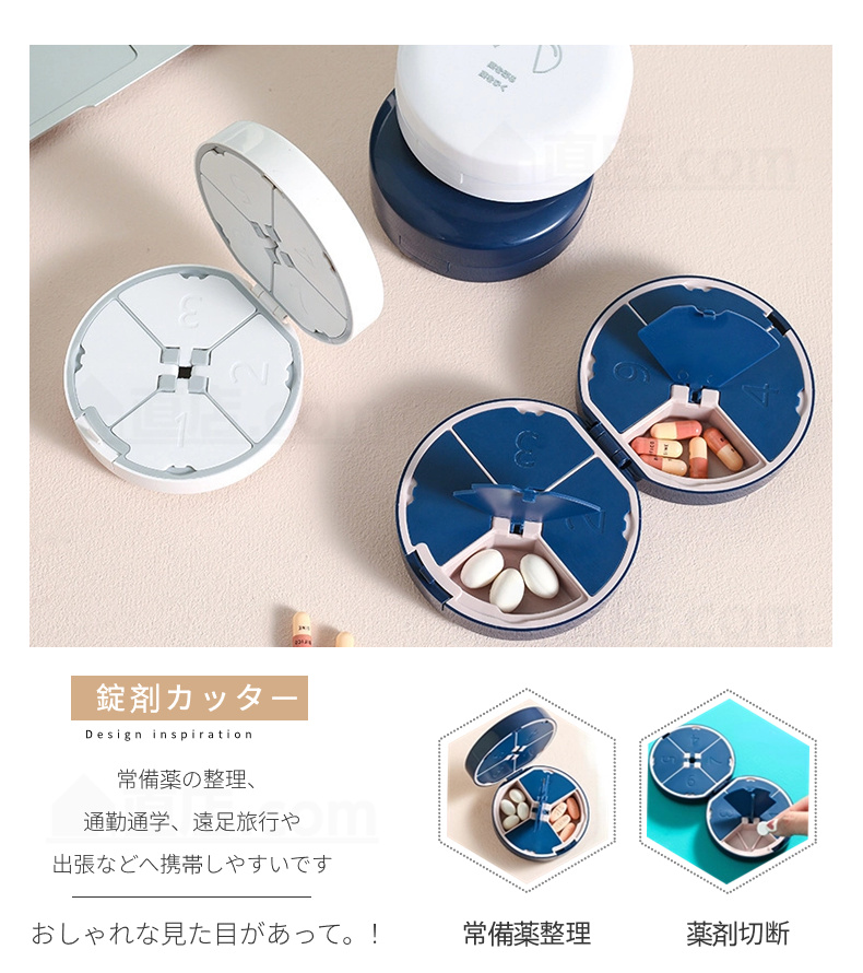ピルケース ピルカッター 薬の錠剤カッター 携帯用 薬ケース 錠剤カッター 便利 ケース付 持ち運び お薬タブレット 円形 ピルカッター お薬ケース 一週間