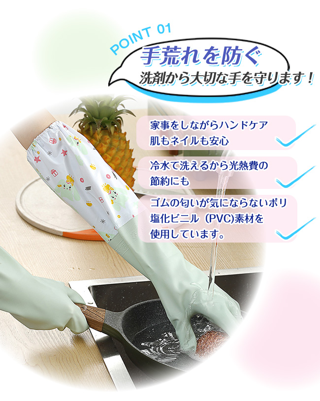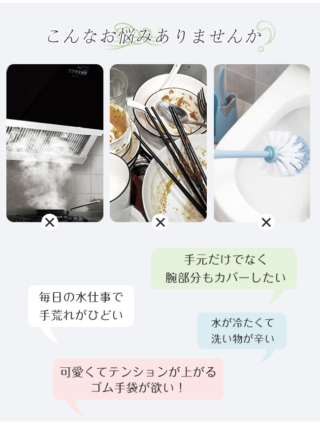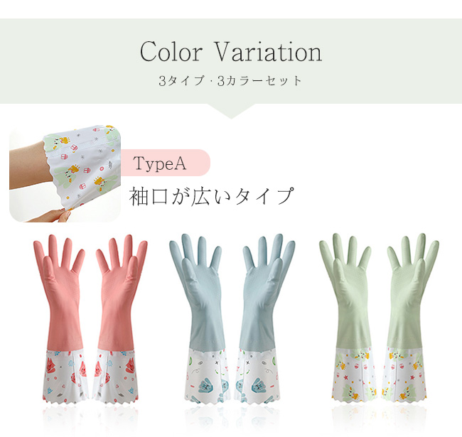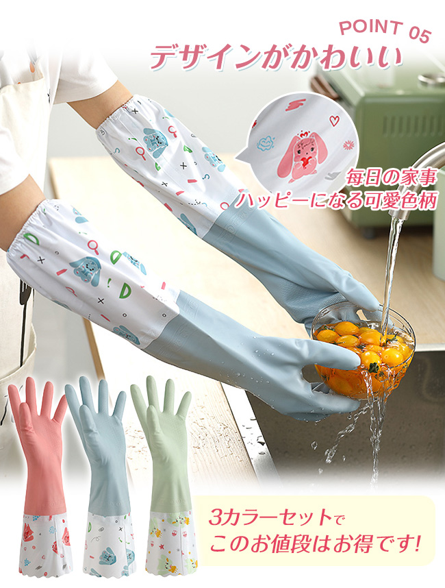 キッチンゴム手袋 ロング 3枚セット 3タイプ 作業用 ロング ロングスブ 手荒れ防止 クニング キッチン掃除 食器洗い