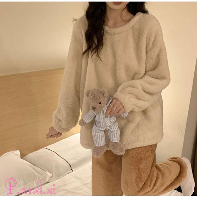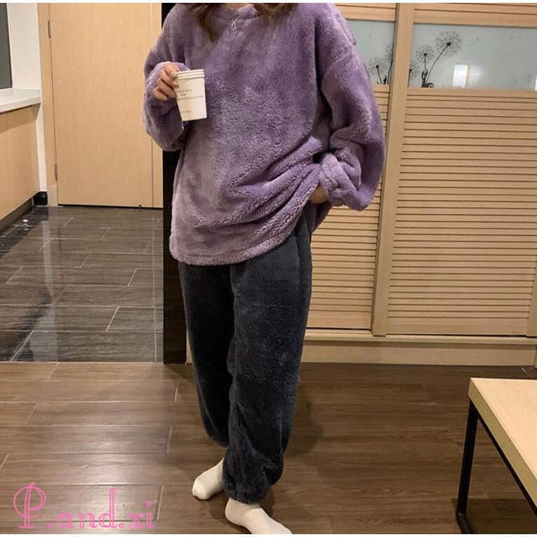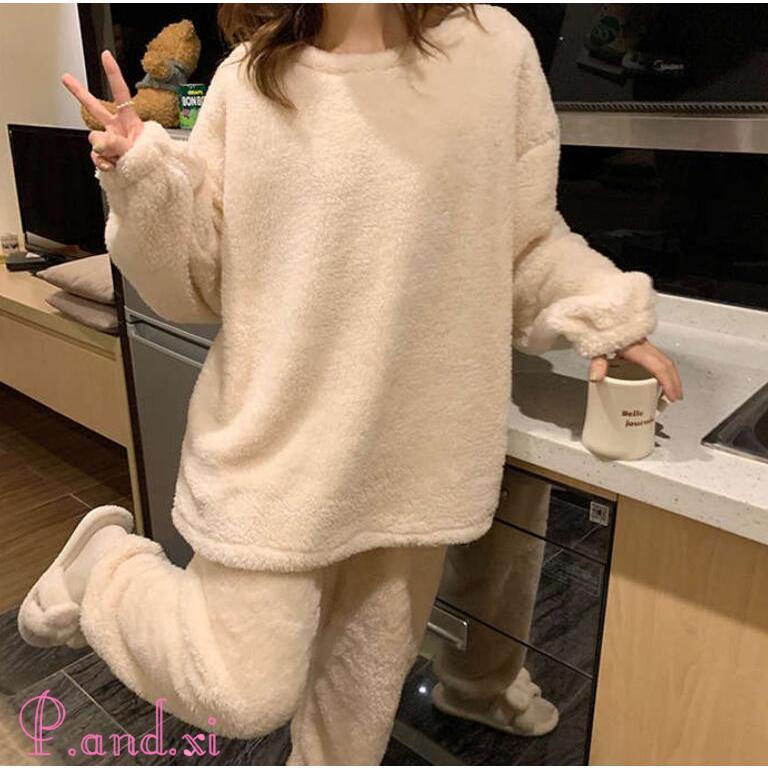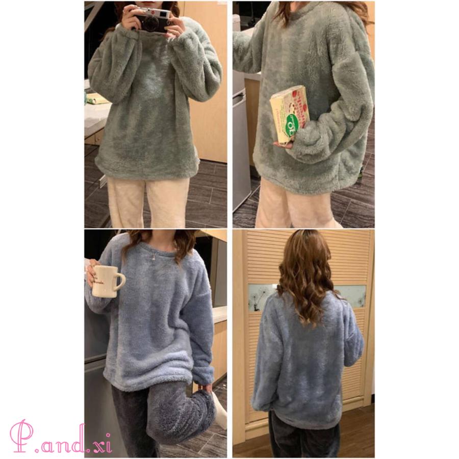 ルームウェア レディース 長袖 もこもこ セットアップ パジャマ ボア ふわふわ 寝巻き 上下セット 着る毛布 防寒 部屋着 可愛い 裏起毛 あったか 秋冬