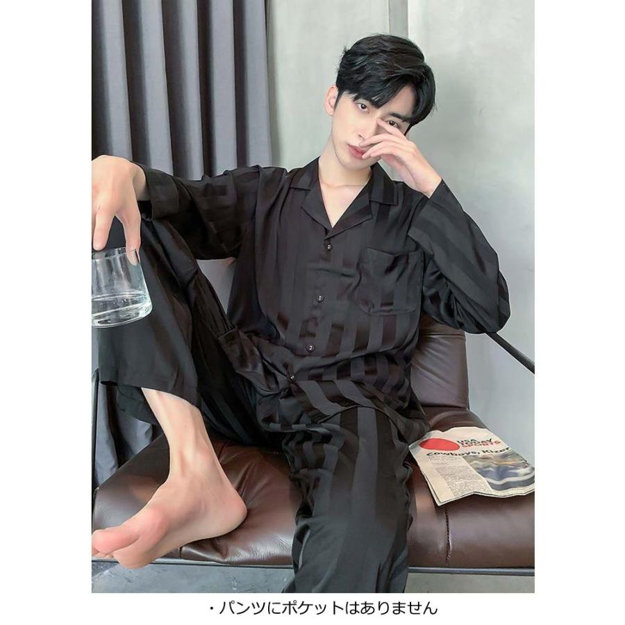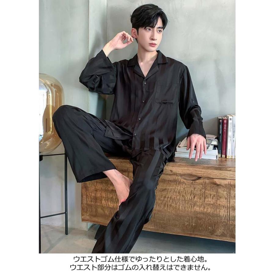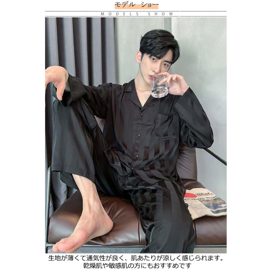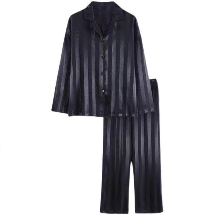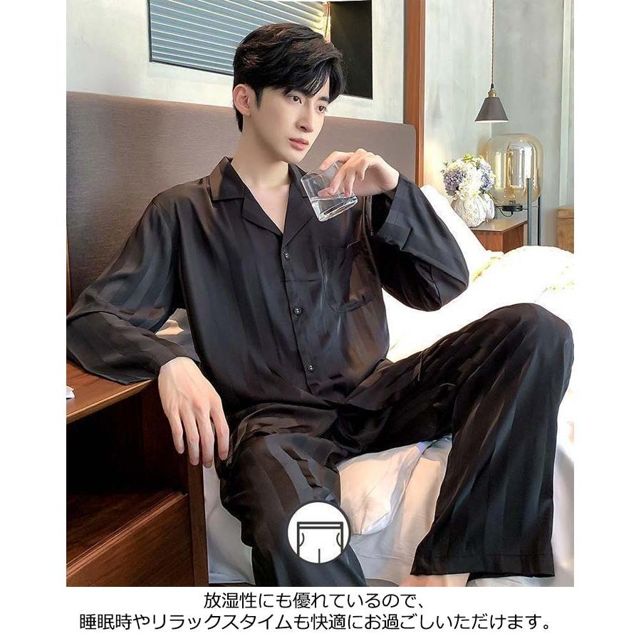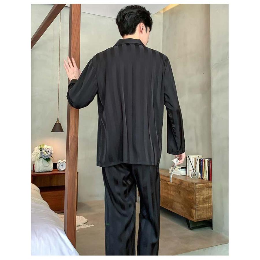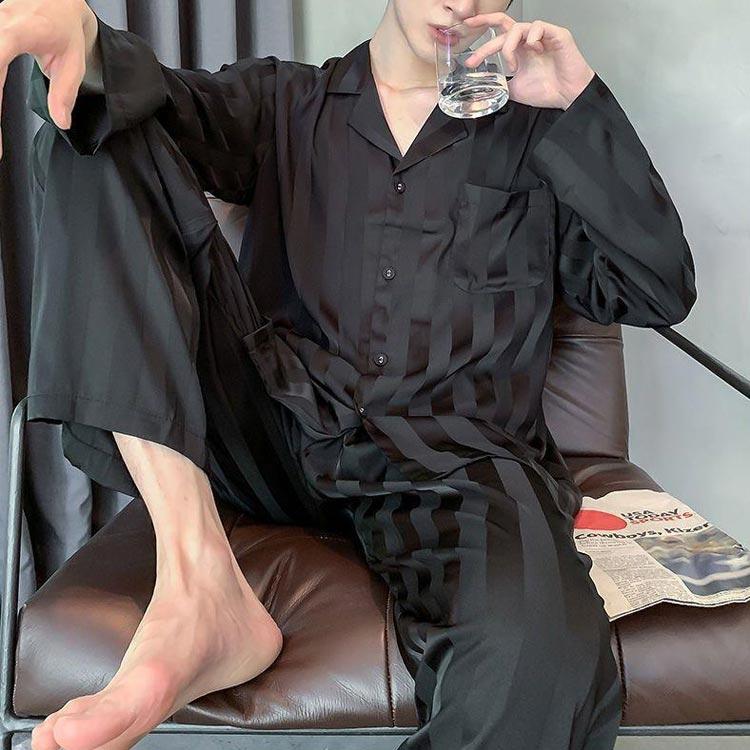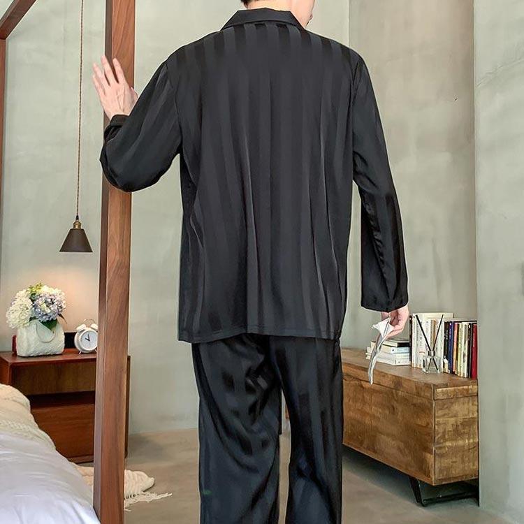 2点セット メンズ パジャマ アイスシルク 長袖 カーディガン 秋 高級感 ファッショ ルームウェア 春 セットアップ 夏 ストライプ 韓国 贅沢 冬