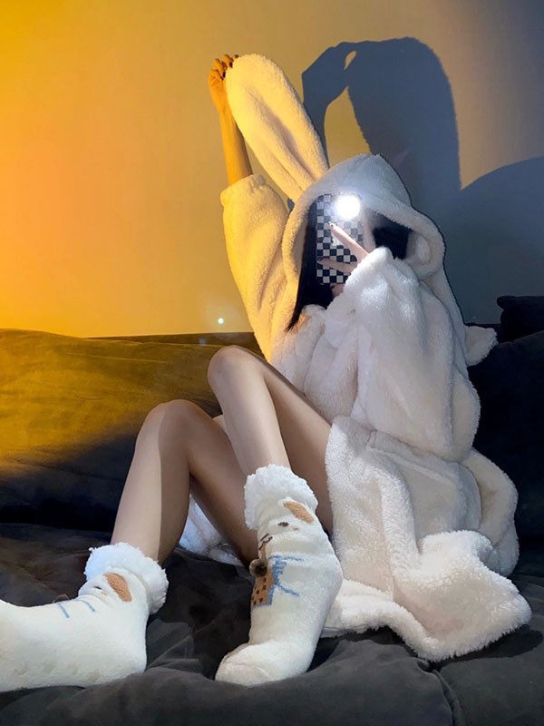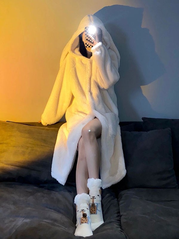 ルームウェア もこもこ パジャマ 大きいサイズ 冬 長袖 ナイトガウン 着る毛布 前開き フード付き 寝巻き 部屋着 暖かい あったか 。 モコモコ 大人用 ふわふわ 動物 レディース 女性用 ガウン かわいい 可愛い ギフト プレゼント N1D7
