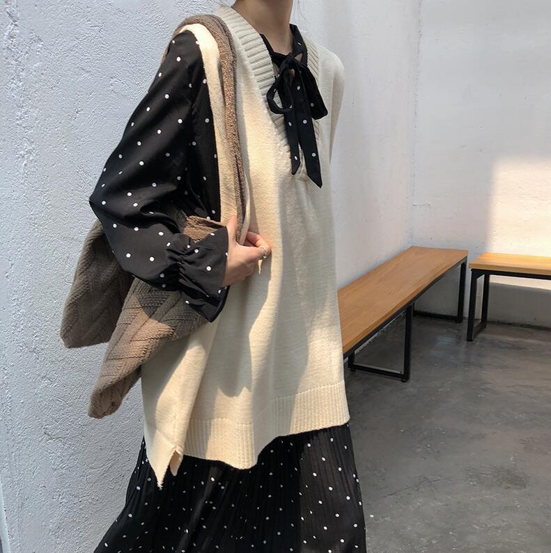 ニットベスト レディース 春 秋 プルオーバー ニット ベスト おしゃれ カジュアル 重ね着 レイヤード シンプル ノースリーブ トップス 体型カバー 着回し
