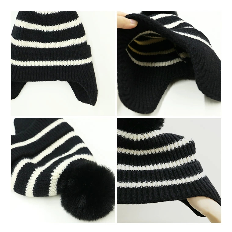シンプルで合わせやすいポンポンつきニット帽 耳当て付きで真冬でもあったか♪