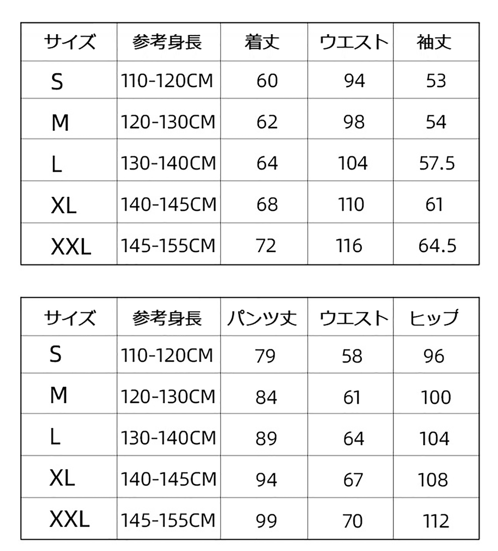 サイズ S(身長110~120CM) M(身長120~130CM) L(身長130~140CM) XL(身長140~145CM)