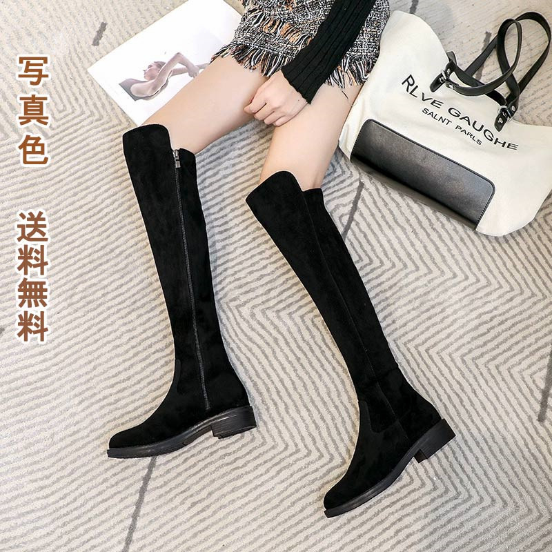 ロングブーツ ニーハイブーツ レディース 靴 美脚 シューズ ジョッキー ストレッチ ハイヒール 太ヒール 仕事 パーティー 普段使い