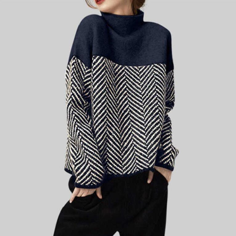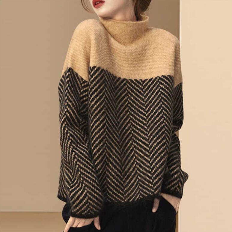 キーワード:セーター トップス レディース ニット 秋 冬 新作 長袖 ニットセーター ライン柄 ストライプ プルオーバー ハーフネック ハイネック ゆったり 可愛い お洒落 体型カバー カジュアル レトロ かわいい 通勤 OL おしゃれ 20代 30代 40代 50代 大人 配色 切り替え 送料無料
