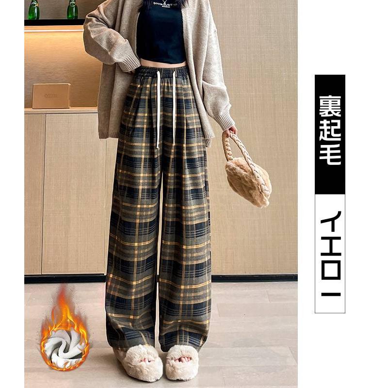 ロングパンツ レディース チェックパンツ 裏起毛 ゆったり 防寒 暖かい ワイドパンツ チェック柄 カジュアル ハイウェスト ズボン 着痩せ おしゃれ 通学 美脚 2TYPE