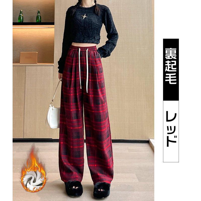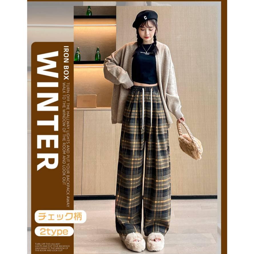 ロングパンツ レディース チェックパンツ 2TYPE 裏起毛 ゆったり ワイドパンツ ズボン チェック柄 暖かい ハイウェスト カジュアル 防寒