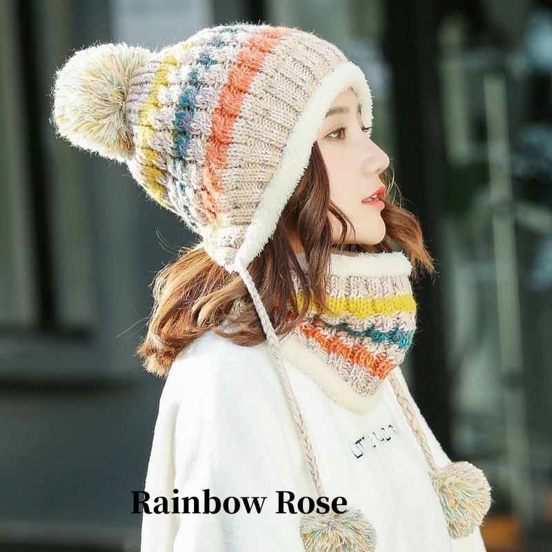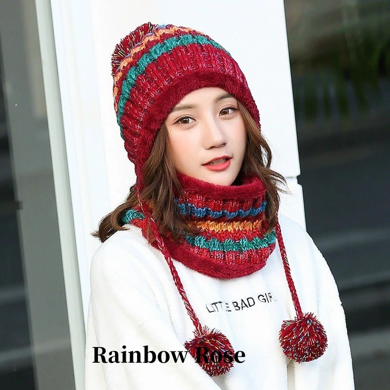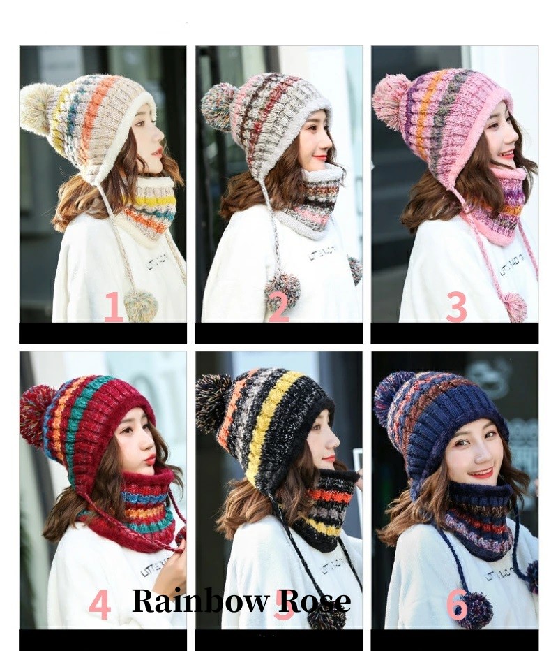 #128149 防寒保温おしゃれ 寒い季節に嬉しい、お揃いの柄のニット帽とネックウォーマーのセット。何色にも合わせやすい多色ノルディック風ボーダー。大きめのポンポンも特長です。どちらも裏起毛で冷えやすい首元や耳元を暖かく守ってくれます。スキーやスノボ、スケートなどのウィンタースポーツ、真冬のアウトドアにもおすすめです。お洒落なデザインと、機能性を兼ね備えたニット帽とネックウォーマーです。