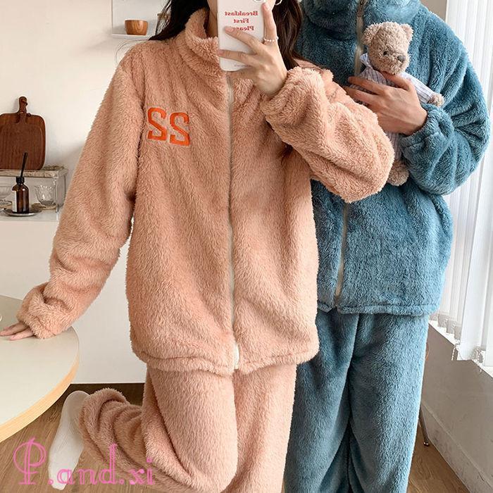 ルームウェア 上下セット 冬 パジャマ レディース 長袖 上下パジャマ もこもこ 秋冬 部屋着 あったかい ルームウェア 前開き かわいい