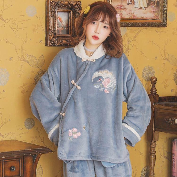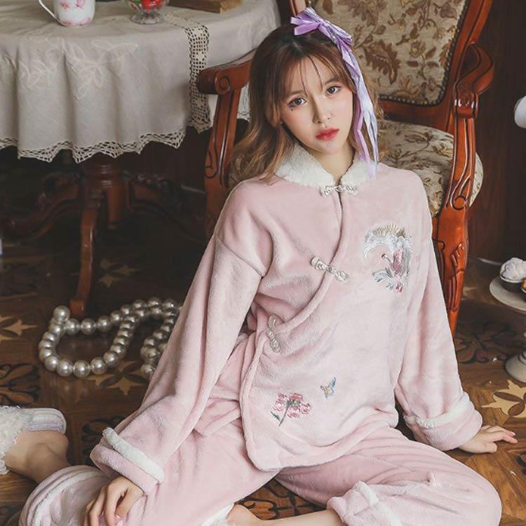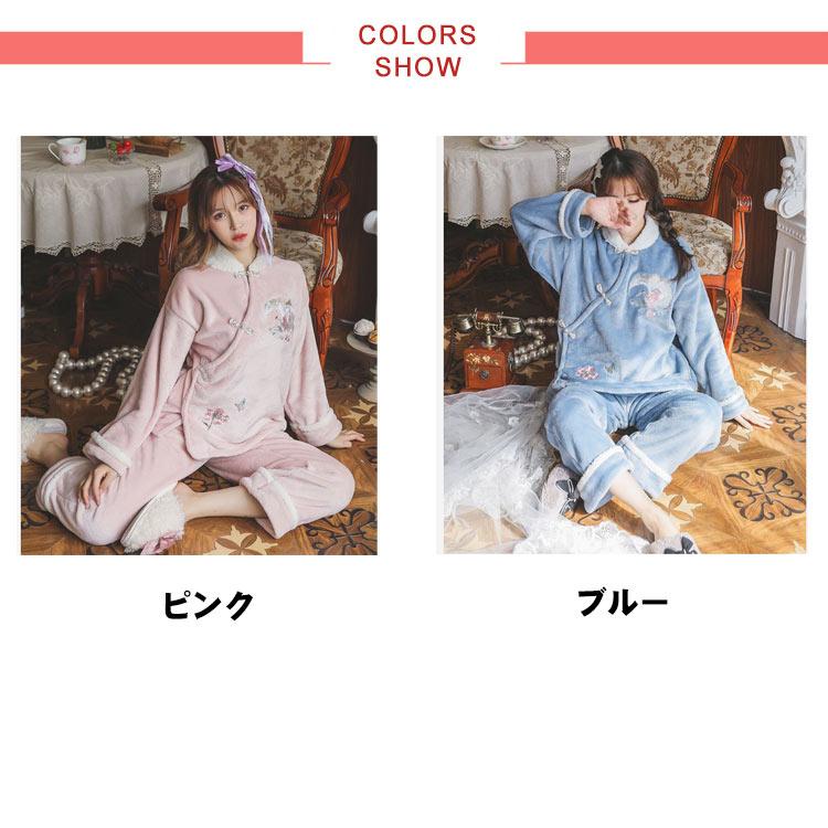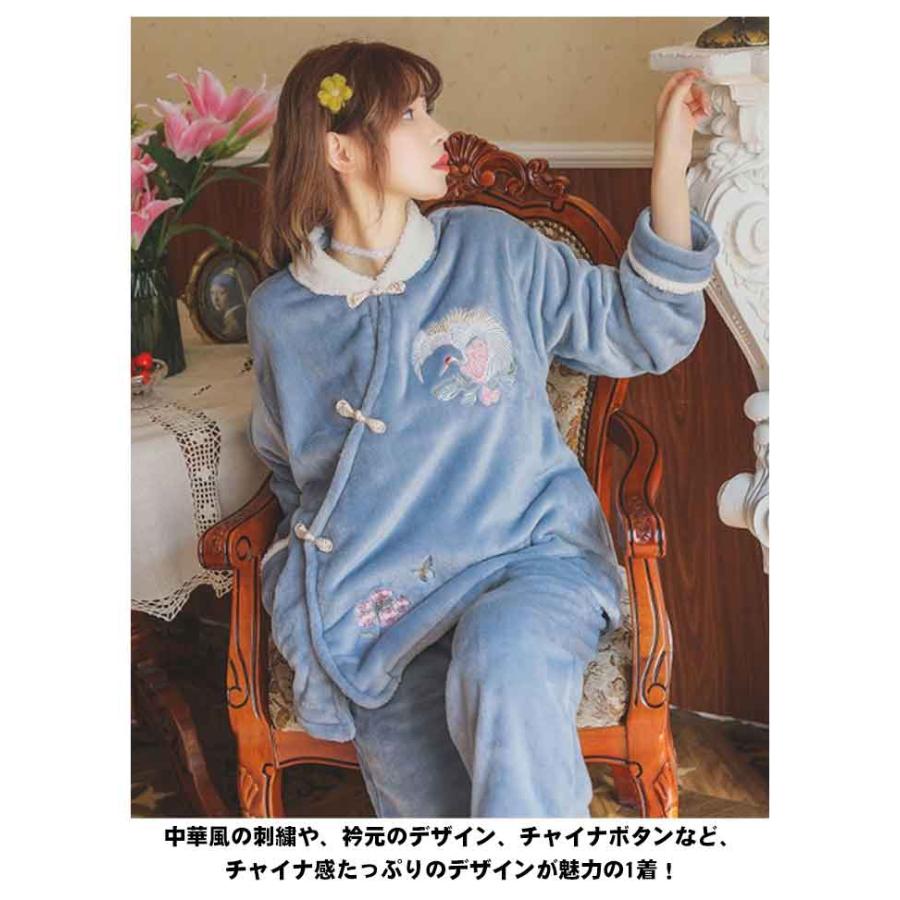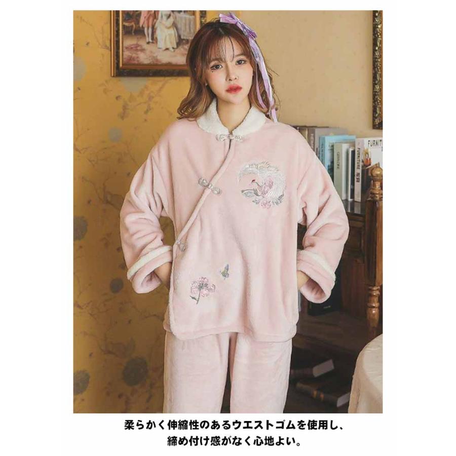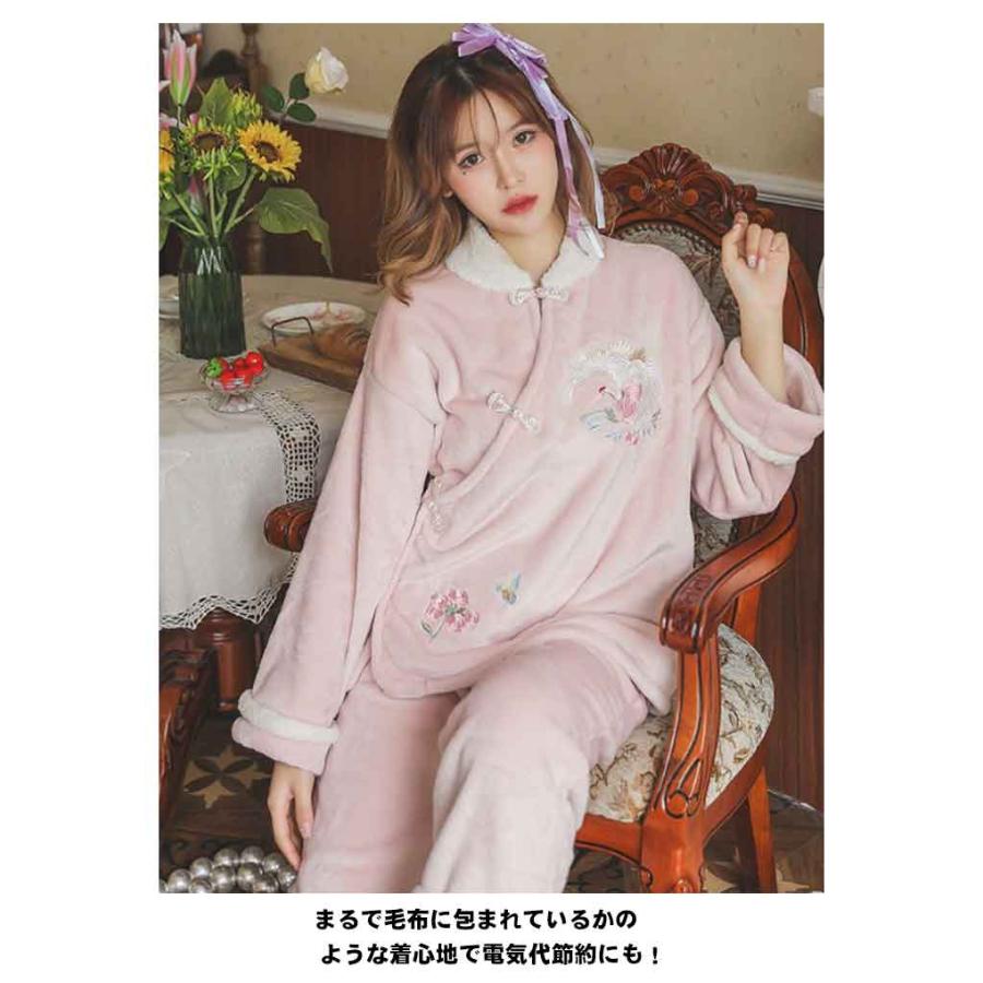 部屋着 長袖 極暖 チャイナ風 冬 上下セット 暖かい 裏起毛 クリスマス あったかい ルームウェア 着る パジャマ マイクロファイバー レディース