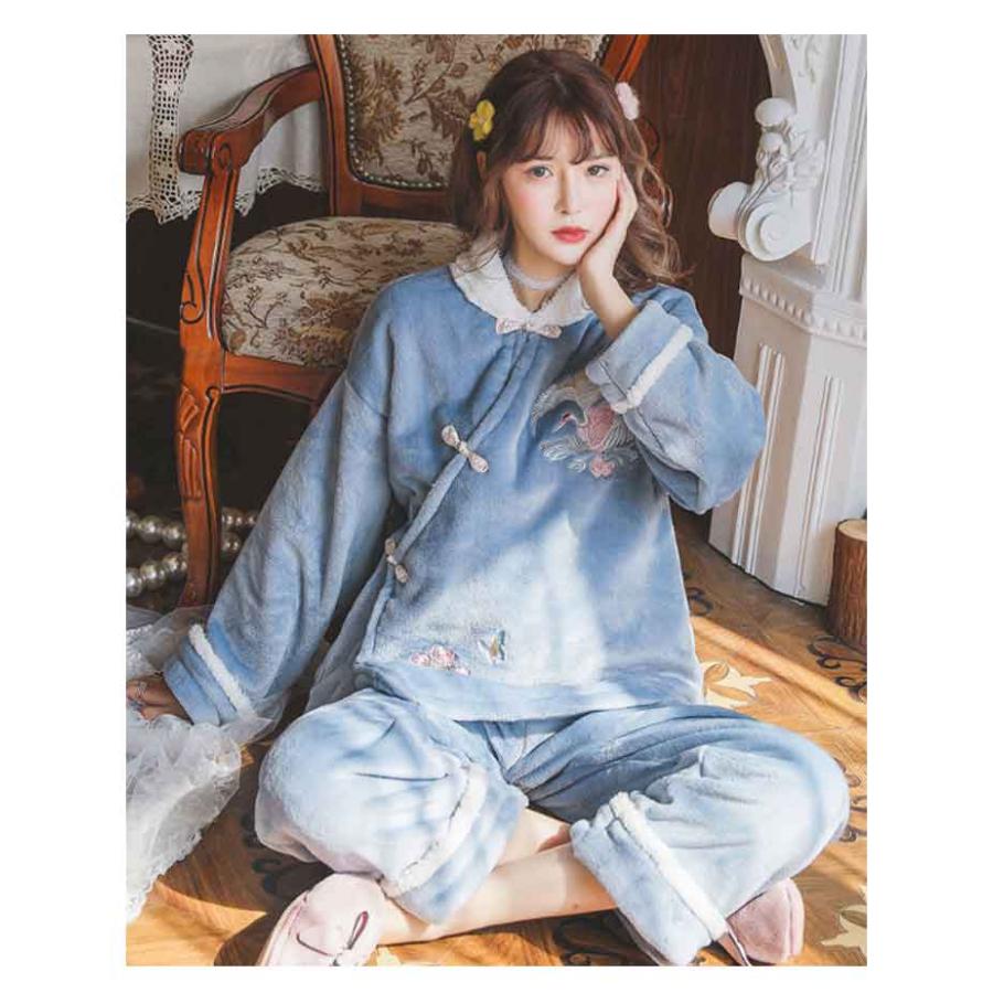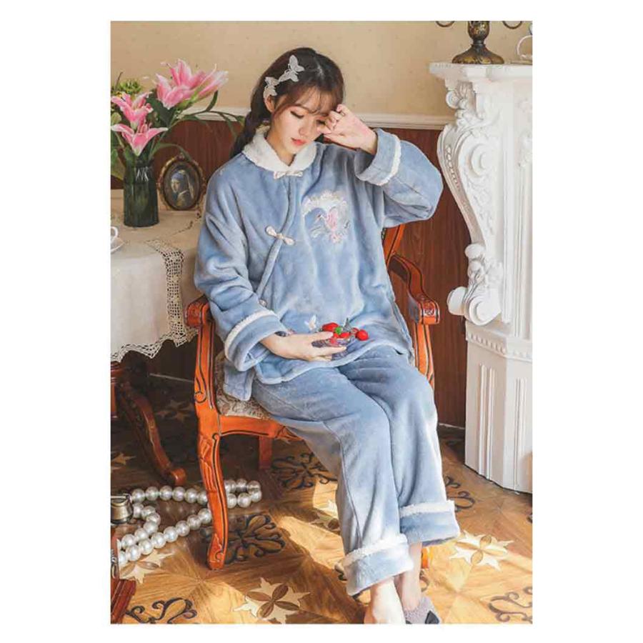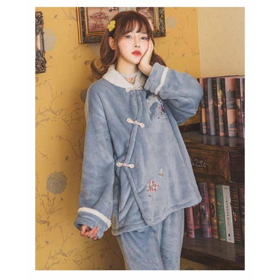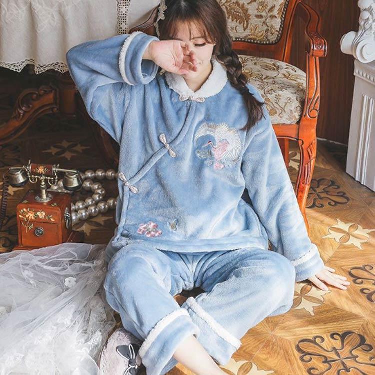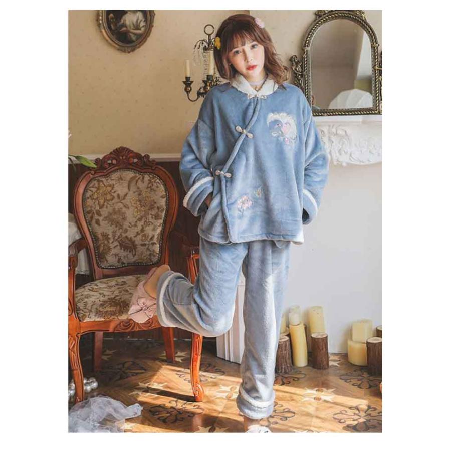 部屋着 長袖 極暖 チャイナ風 冬 上下セット 暖かい 裏起毛 クリスマス あったかい ルームウェア 着る パジャマ マイクロファイバー レディース