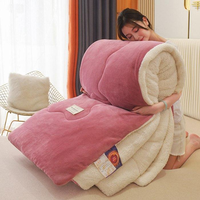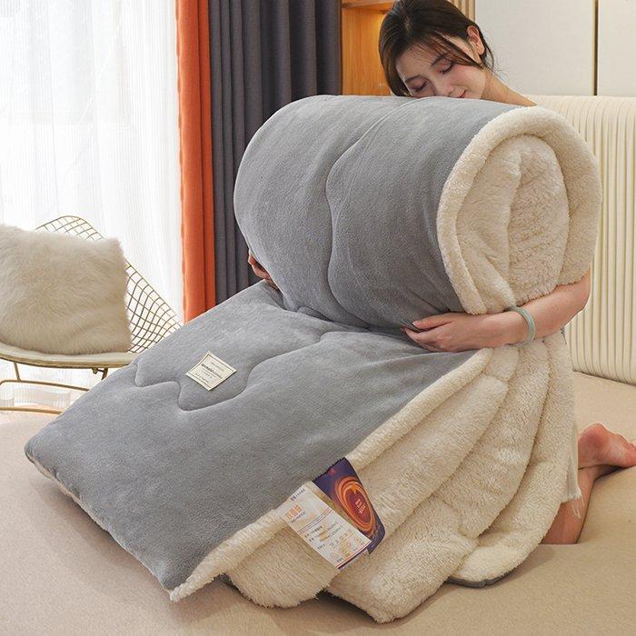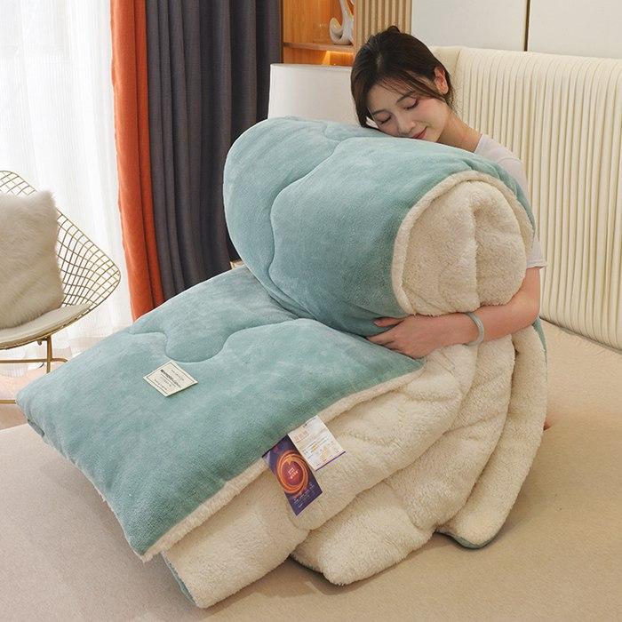 二枚合わせが マイクロファイバーとシープボア2枚の毛布生地を重ねて縫い合わせて作った厚手毛布布団で生地と生地の間に空気の層が生まれるため、保温性抜群。