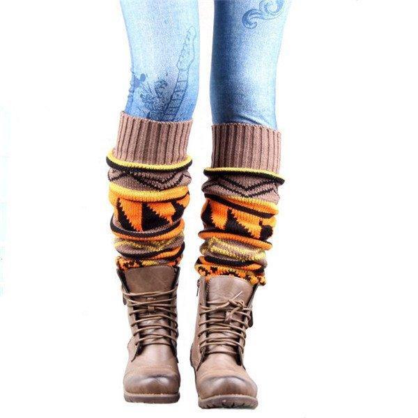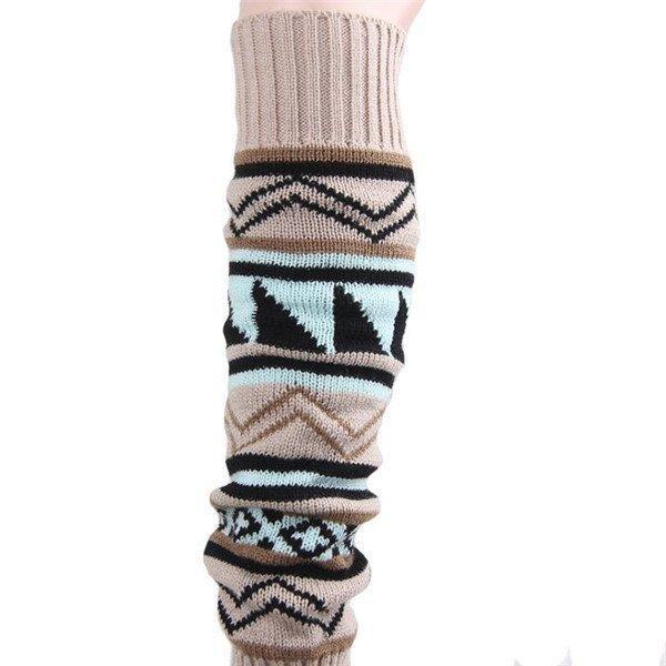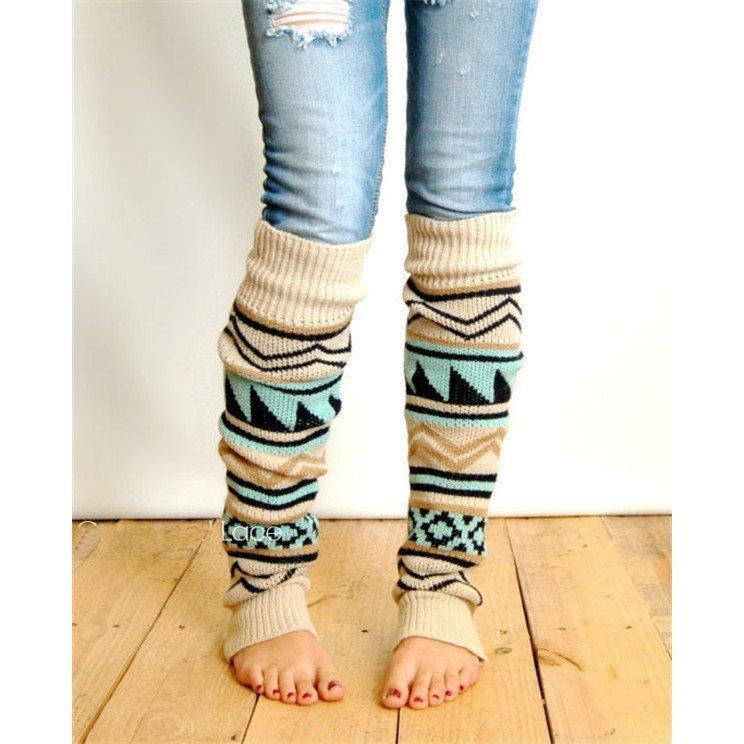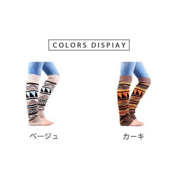 キーワード レッグウォーマー ロング丈 膝下 膝上 ボヘミアン柄 エスニック ニット 模様 ルーズ あたたかい かわいい 冷え 冷え性 防寒 女性 靴下 冷え取り