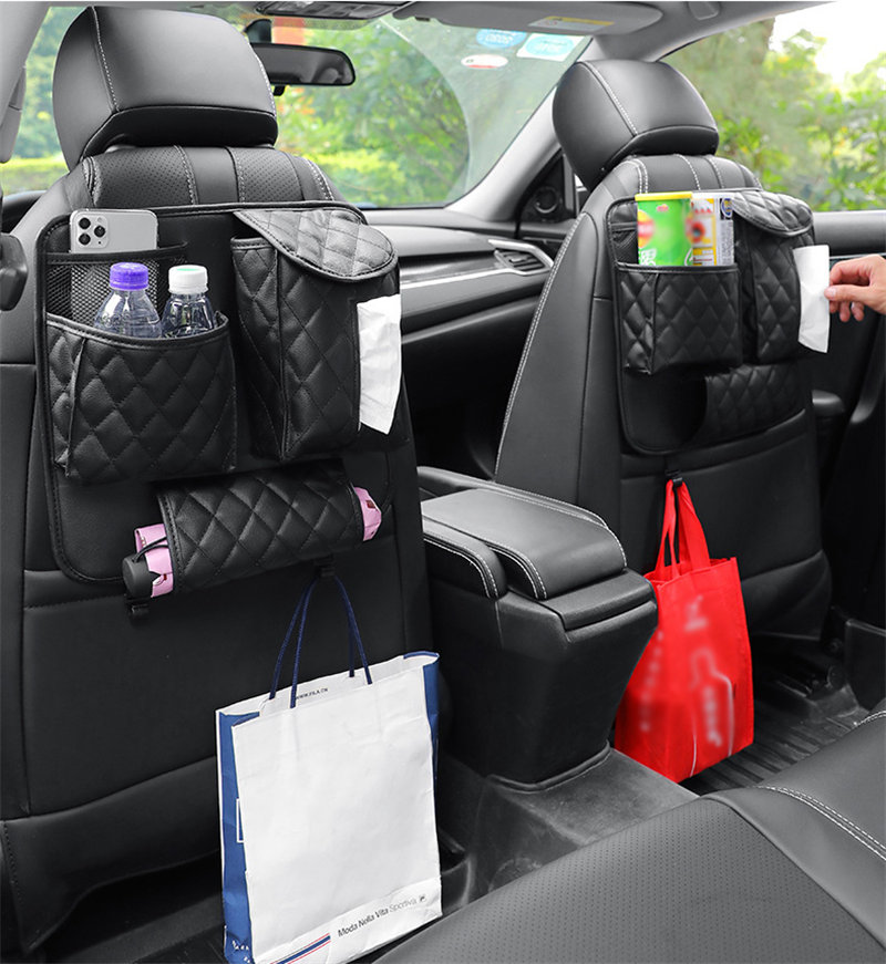 シートバックポケット 車 シートカバー 車内 レザー シート 後付け ドリンクホルダー カバー 後部座席 収納 子供 ティッシュ入れ