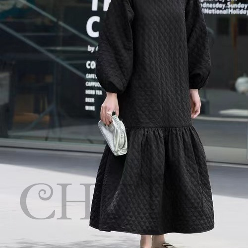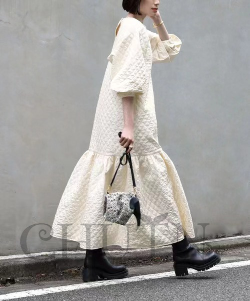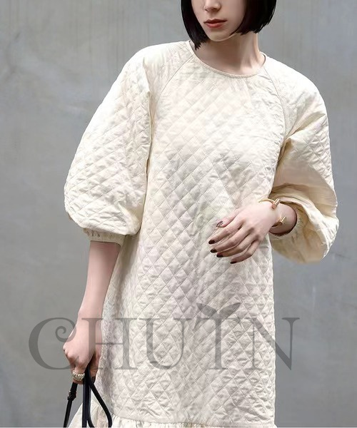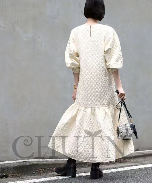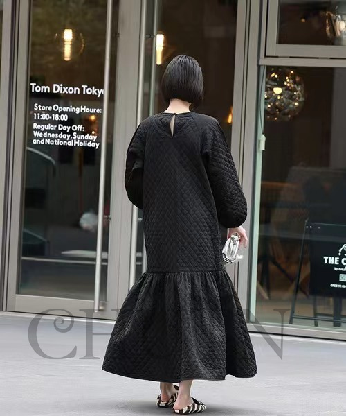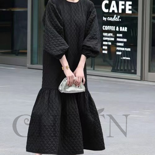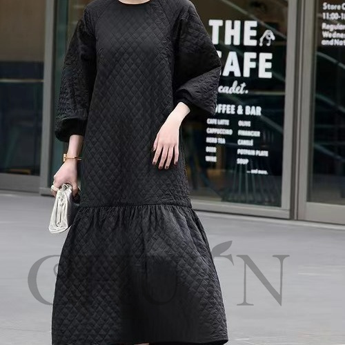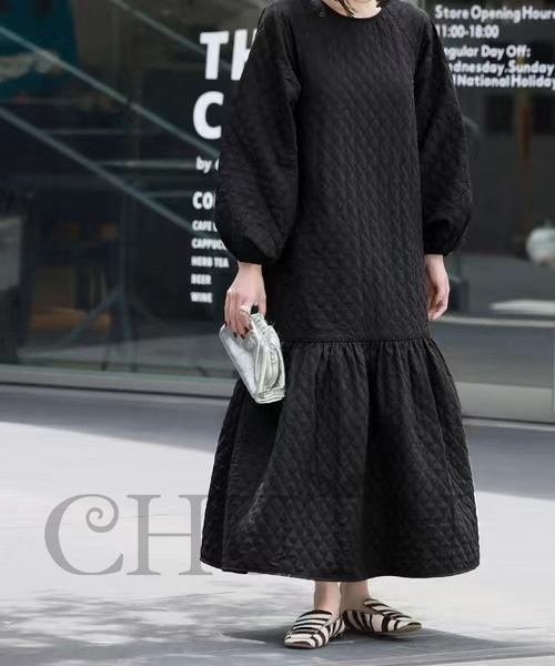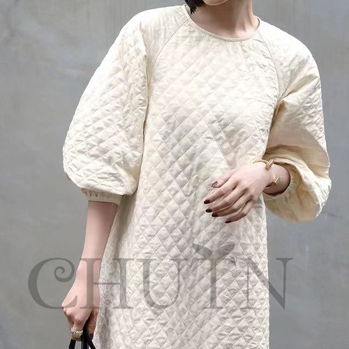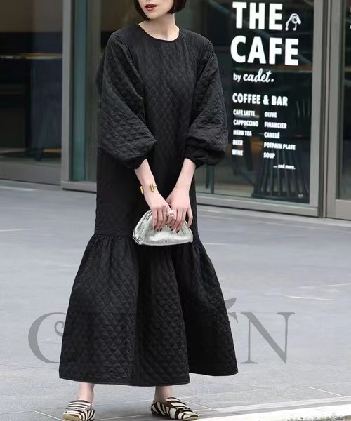 春中綿ワンピース秋冬ワンピースロングワンピース40代 ワンピース 中綿5分袖 体型カバー 中綿マキシ丈ワンピース 大きいサイズゆったり