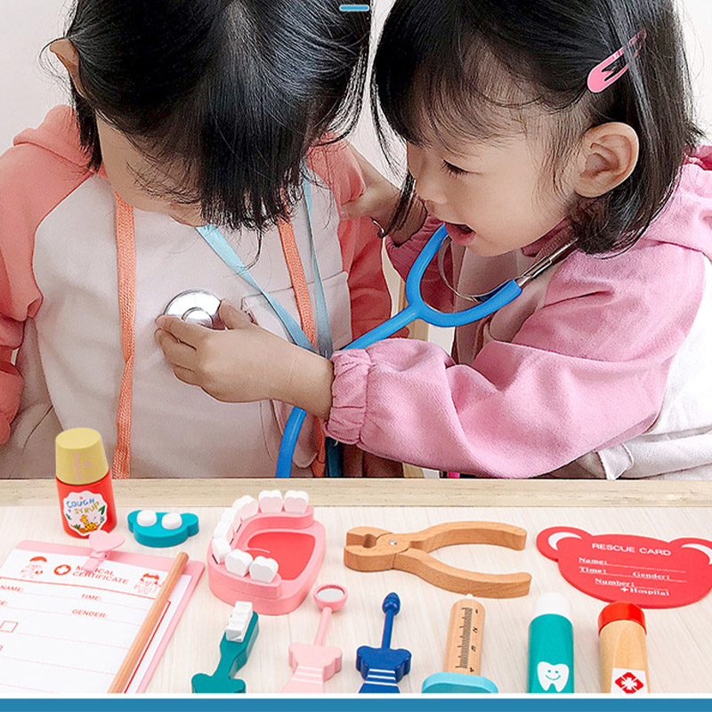おままごとでお医者さんや看護師さんを演じ、看病や注射を真似して、ごっこ遊びの中に実際の病院への恐れもどんどん減るでしょう。更に歯医者さん道具を通じて普段歯磨きで歯をきれいにする意識も育ち、いい生活習慣も身に付けることで、身体の健康保ちに役たちます!