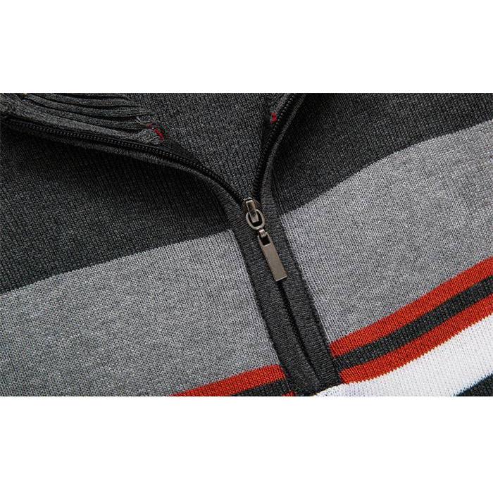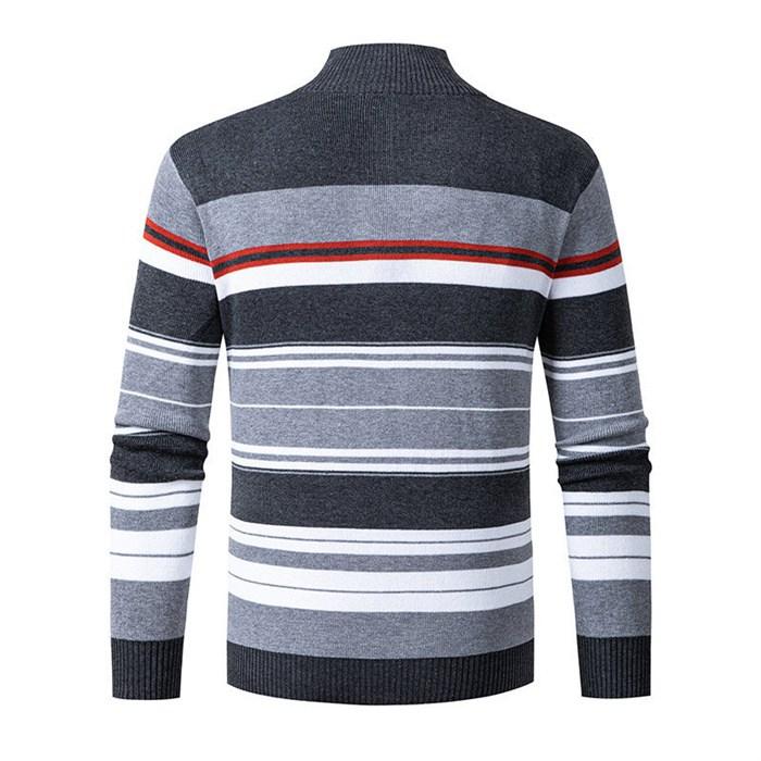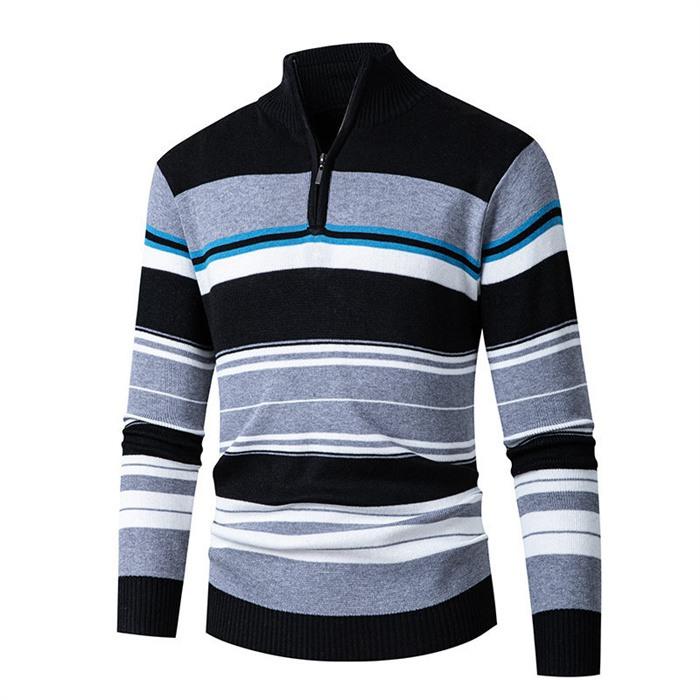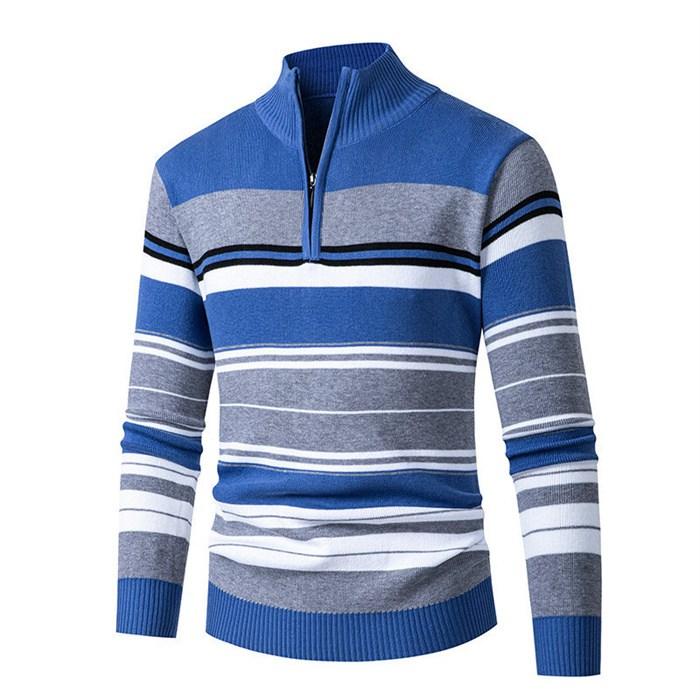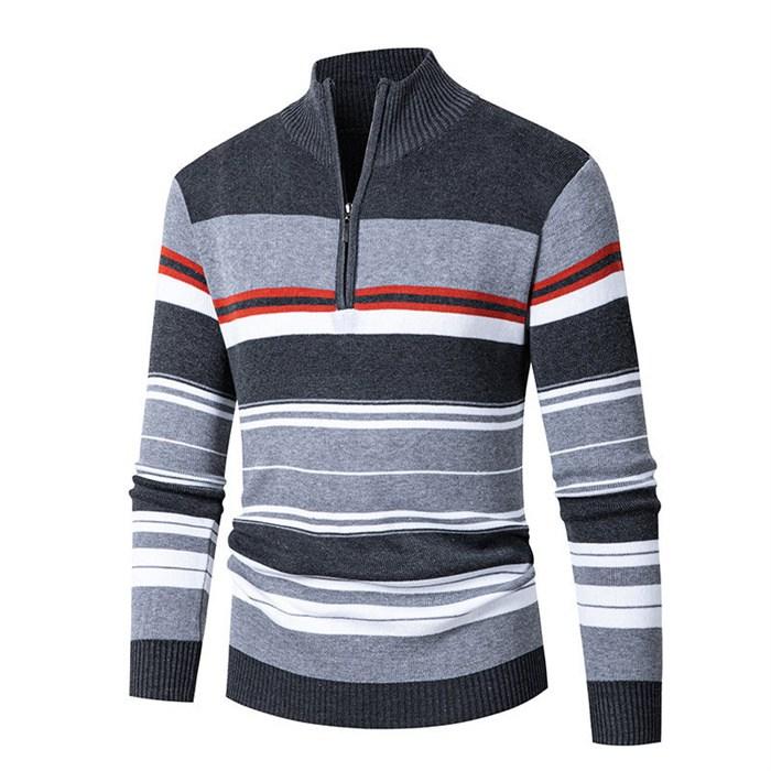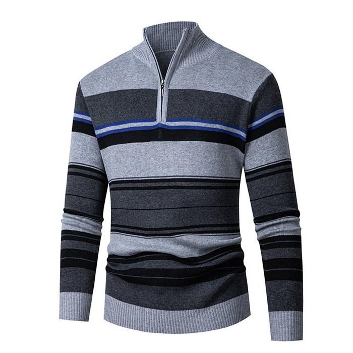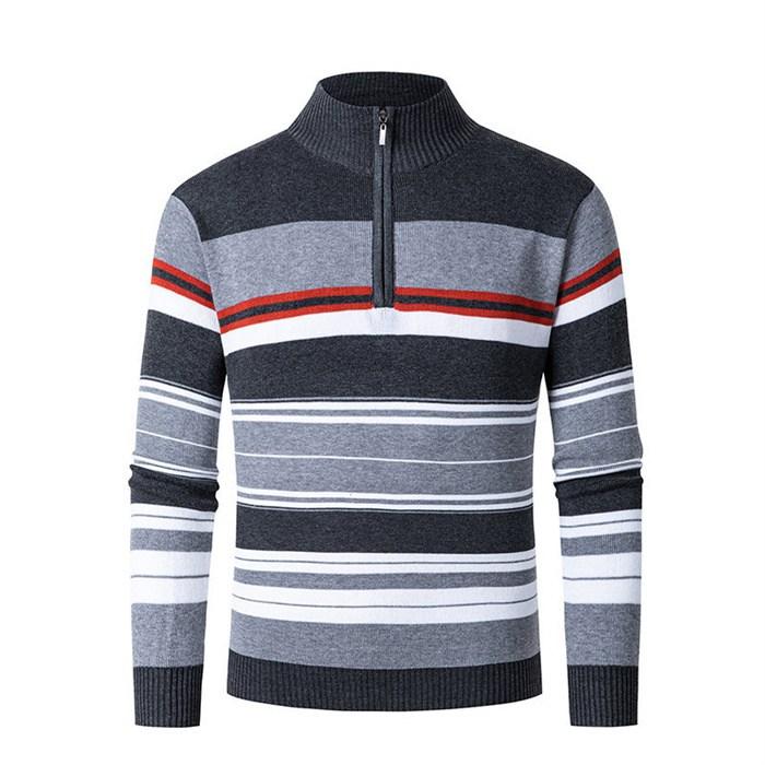 ニットセーター メンズ 長袖 ニット セーター プルオーバー ファスナー 立ち襟 ボーダー柄 トップス 無地 カジュアル シンプル