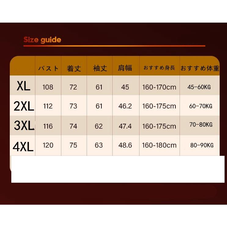 サイズ XL(日本Mサイズ)、2XL(日本Lサイズ)、3XL(日本XLサイズ)、4XL(日本2XLサイズ)