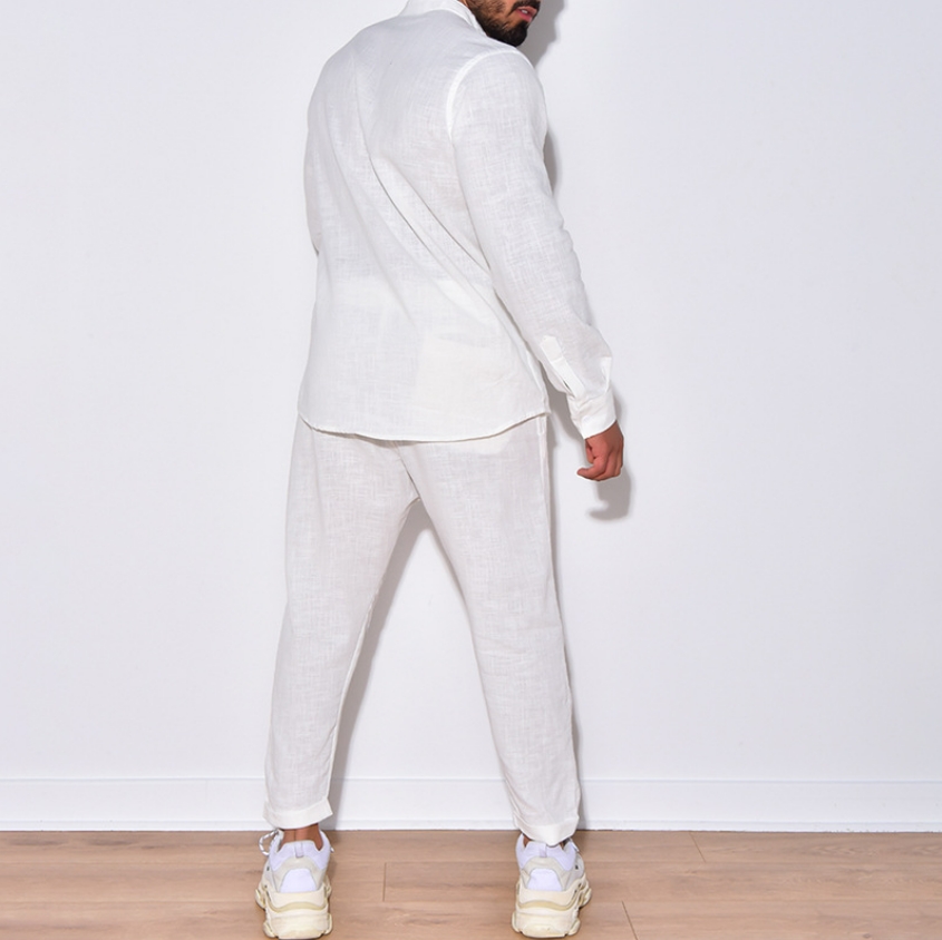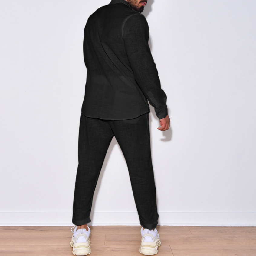 欧米紳士亜麻秋カジュアルスポーツ 長袖セットアップ 長ズボン スウェット 長袖シャツうんどう ノーキャップ 2点上下セット ロングパンツ スキニー
